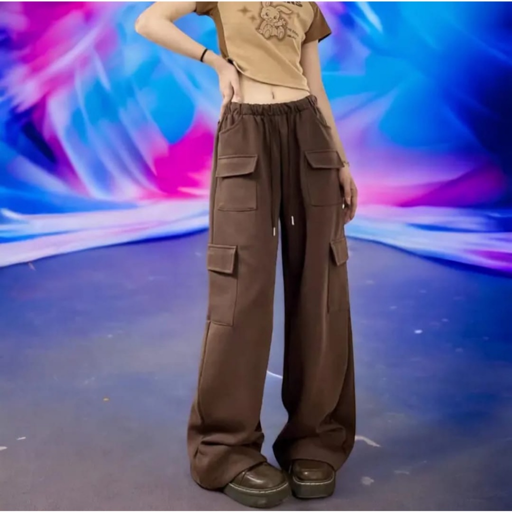 Jooly Up Cargo Sweatpant Loose Pocket Pants - Korean Style Women's Culottes