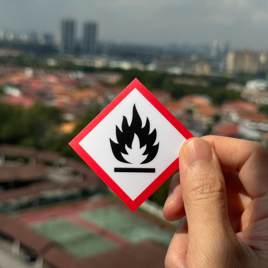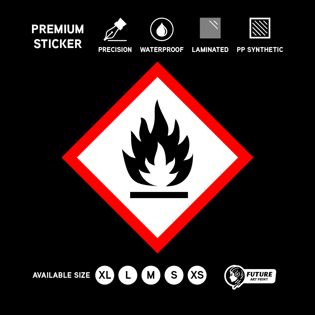 GHS Flame Sticker Safety Label | Flammable Chemical Hazard Warning Sign | Fire Risk Workplace Compliance Mudah Terbakar