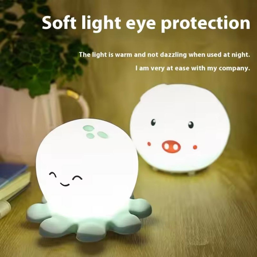 LED Night Light Night Lampu Tidur Baby Colorful Soft Silicone Touch Sensor Lamp Bedside Bedroom Lamp Kids Sleep 拍拍灯
