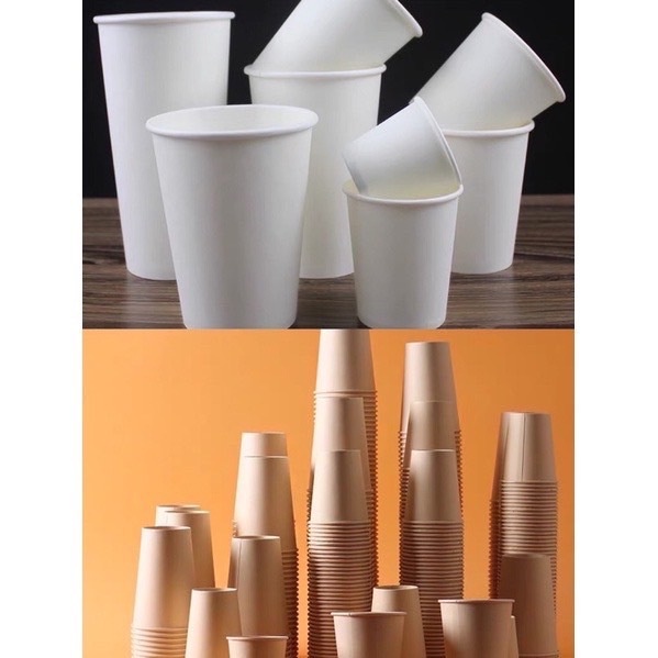 [50 pieces] Cold paper cup [single layer] disposable cup white, Kraft color 4,8,12,14,16,22 oz. lid mouth 80,90 mm