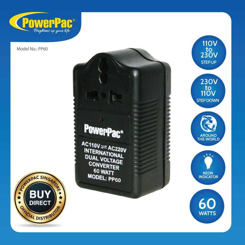 PowerPac Converter Transformer 60W Travel Adapter Step Up & Down Voltage for Taiwan, USA, Japan 110V/ 220V(PP60)