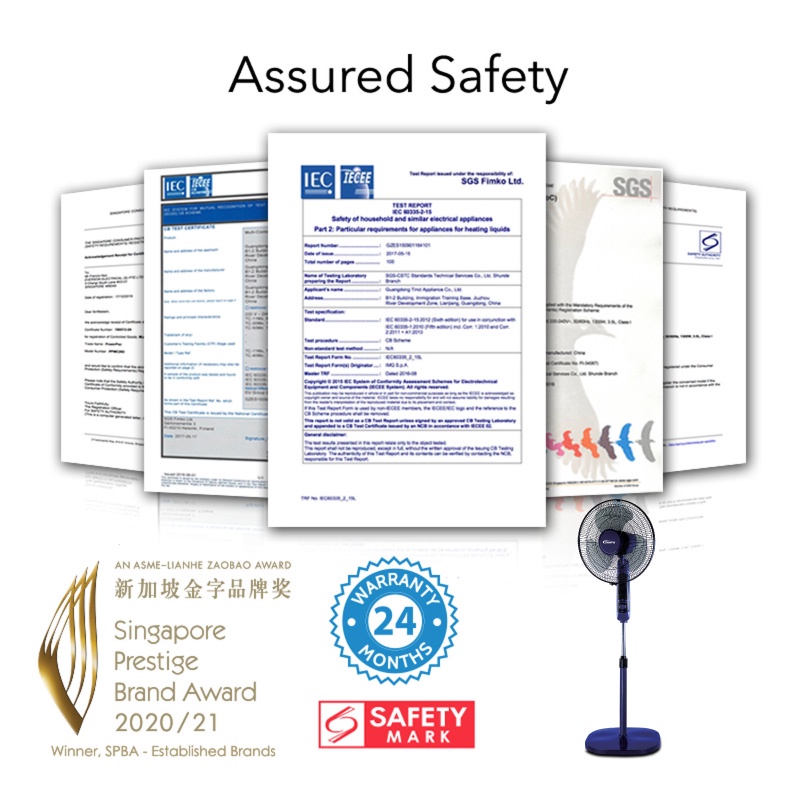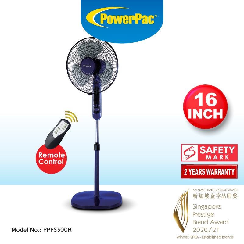 PowerPac 16" Stand Fan – Remote Control, Adj. Height, Oscillation, Timer, Durable, Energy-efficient, 3-Speed (PPFS300R)