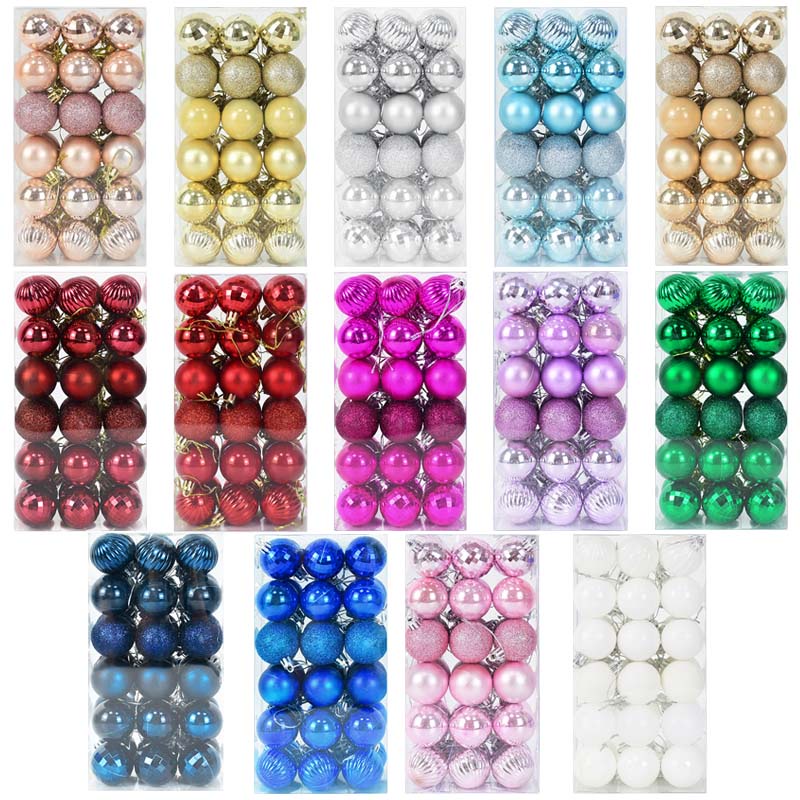1 Box 36pcs Plastic Christmas Balls Ornament 4cm Hang Pendant Ball Indoor New Year Xmas Tree Decor Home Christmas Decoration