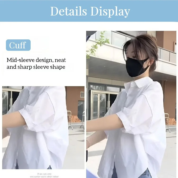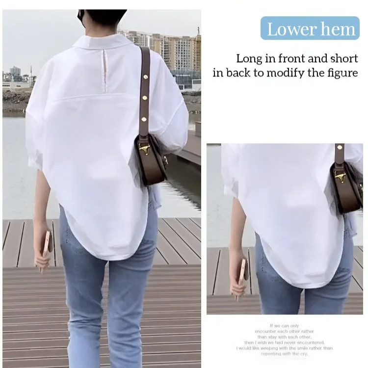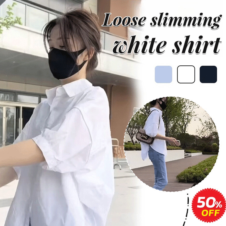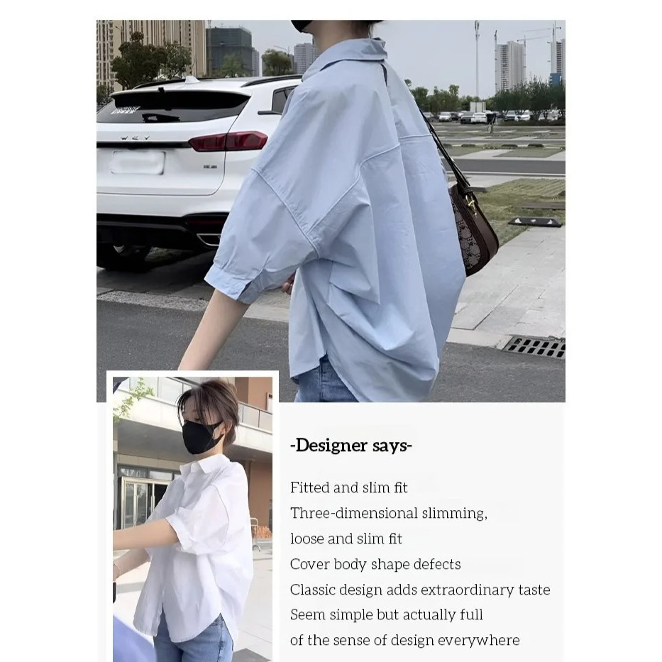 【Hot】Women Loose Slimming Thin White Shirt Korean Style Ladies Summer 3/4 Sleeve Fashion Casual Top/ Casual Batwing Sleeve Plain Blouse Top S-XL