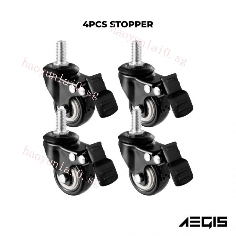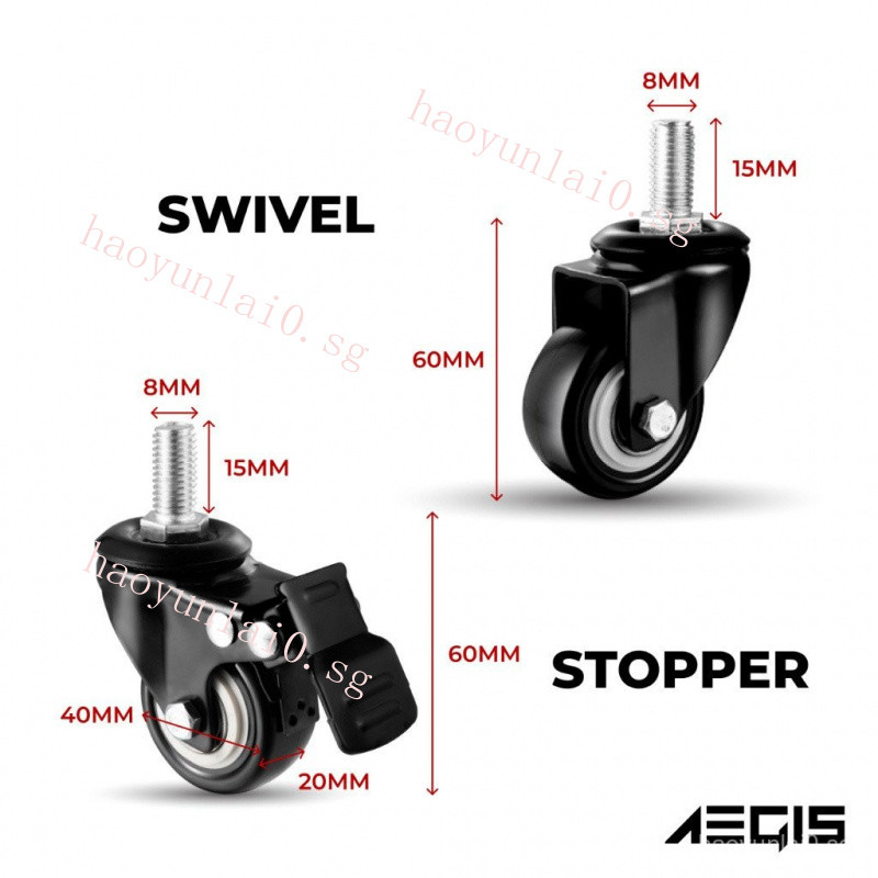 【In stock】AEGIS 4PCS Heavy Duty Castor Wheels M8x15, Height Adjustable Table Wheels, Huge Load Bearing, 360 Degree Swivel & Brake PCUW