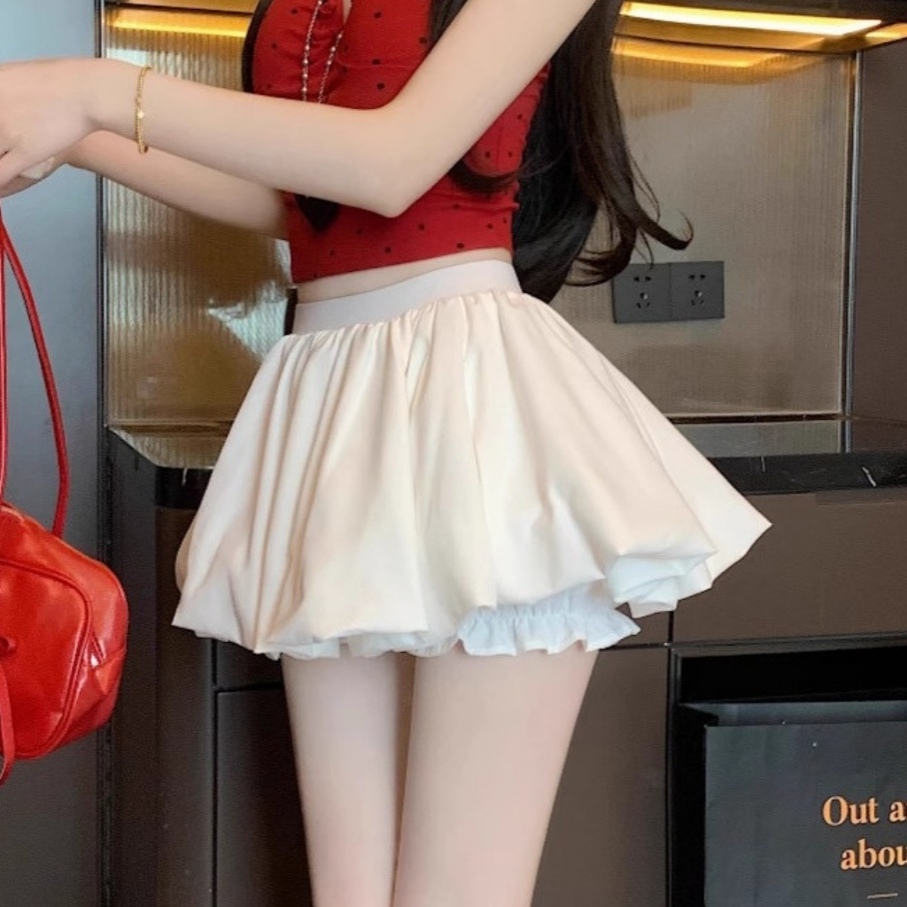 2-layer flared pumpkin skirt with Nquin thigh-high lining, short flared skirt with basic elastic waist, easy to coordinate