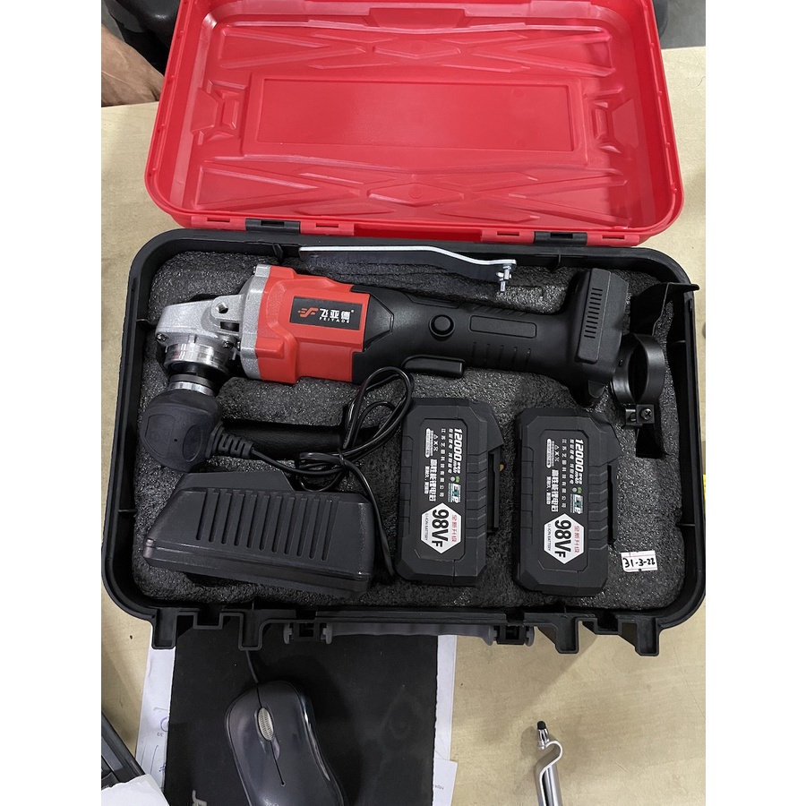 FEIYADE Brushless Paddle Switch Cordless Angle Grinder Set 98V c/w 2 no. Batteries and Charger