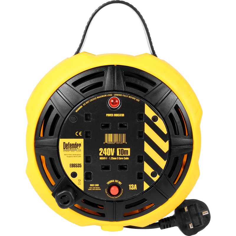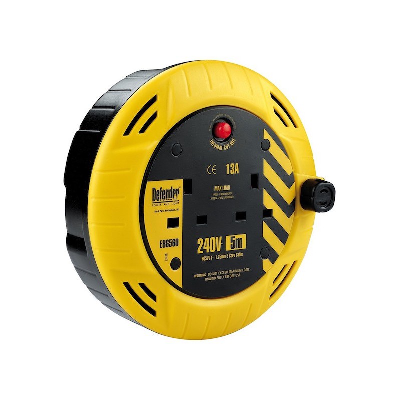 Defender Industrial Cable Extension Cassette Reel- 5M or 10M Length / Retractable Cable Reel