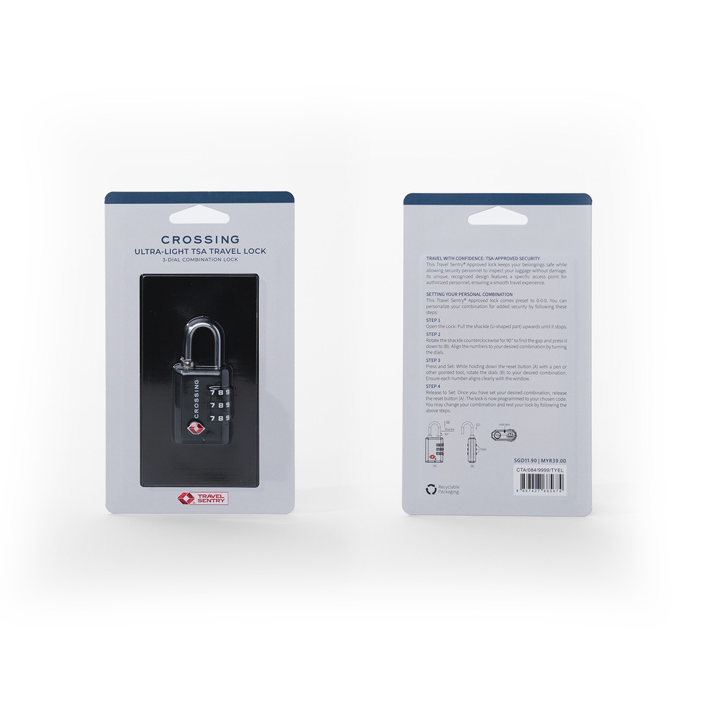 Crossing Ultra-Light TSA 3-Dial Travel Lock | 3 Digit Combination Luggage Bags Suitcase Padlock