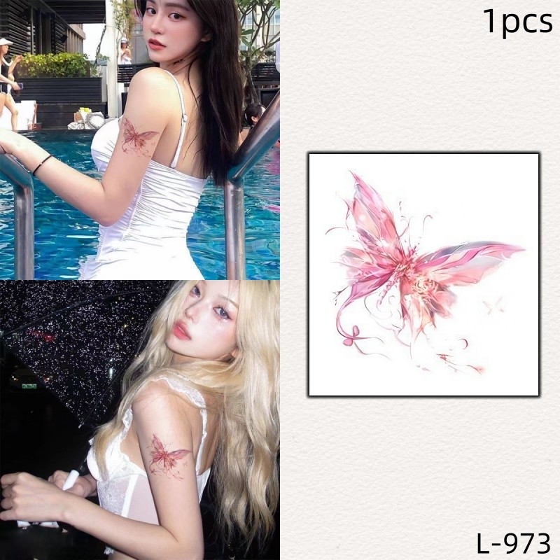Red Rose Butterfly Pattern Tattoo Sexy Girl Arm Tattoo Waterproof Tattoo Stickers Lasting for 7 Days Skin Stickers Temporary Fake Tattoo
