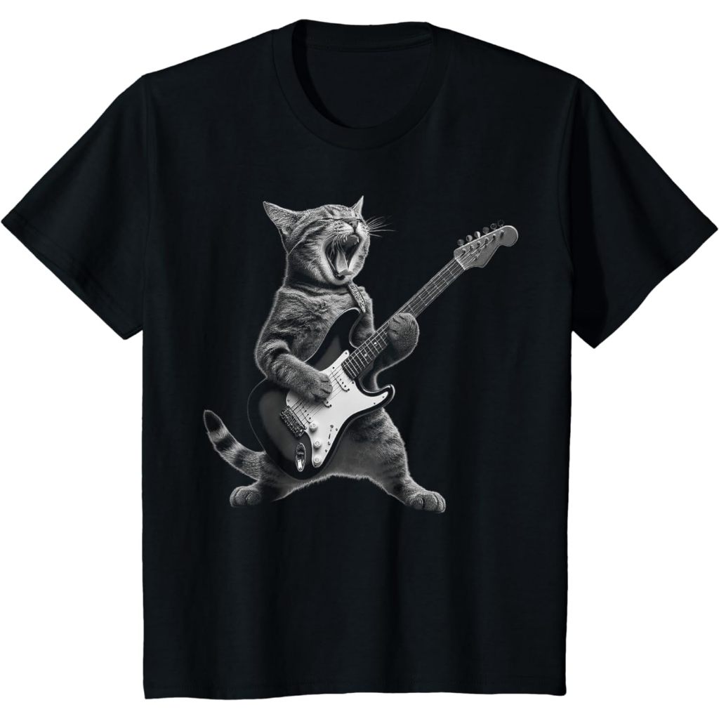 Cat Playing Guitar Rock Star Rock and Roll For Men Women Kid T-Shirt Kids T Shirt Boys