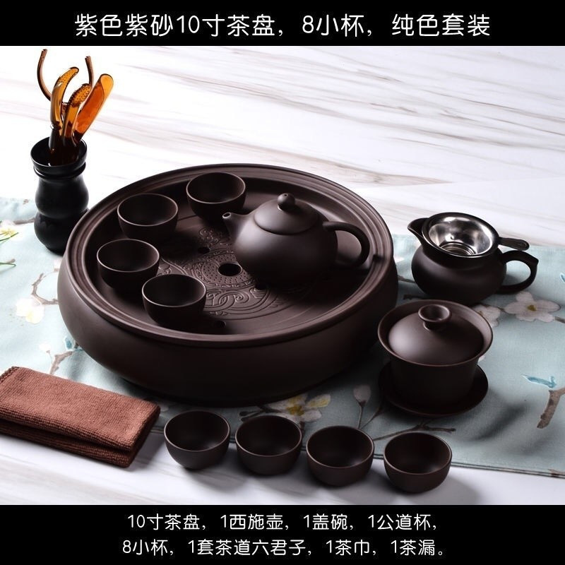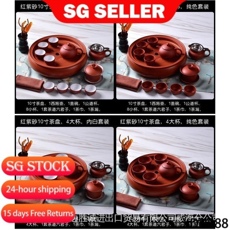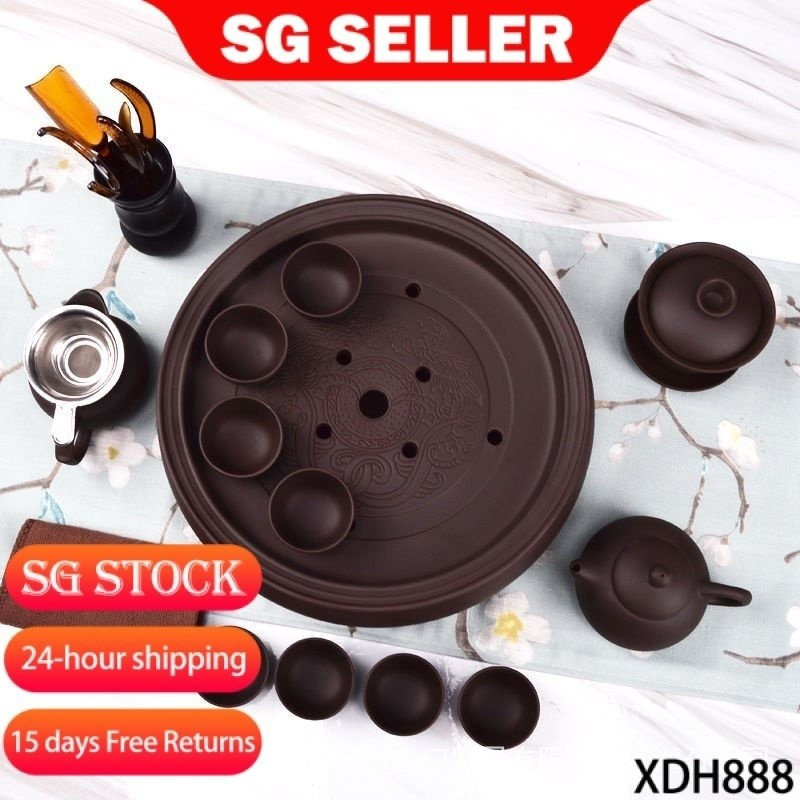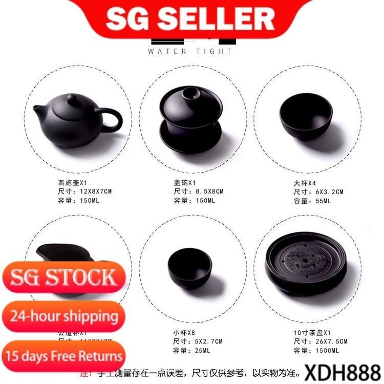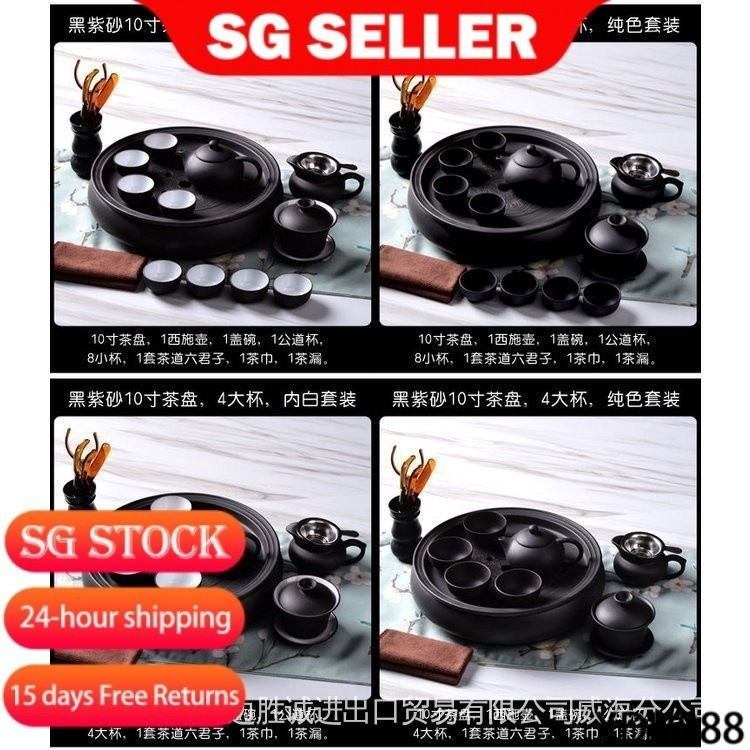 【SG Lucky Store】Tea Set 紫砂茶具 chinese tea set Tea Set Suit Kung Fu Tea Set Purple Sand Pure Black Small Tray Teapot Ceramic 28271464118 CLUL