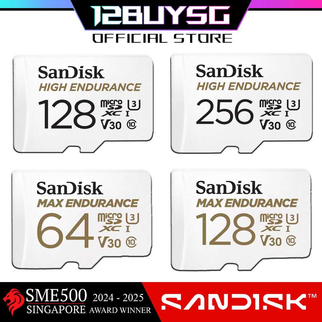 Sandisk Max High Endurance MicroSD Card V30 4K U3 Dash Cam CCTV 32GB 64GB 128GB 256GB 512GB QQNR QQVR 12BUY.SG