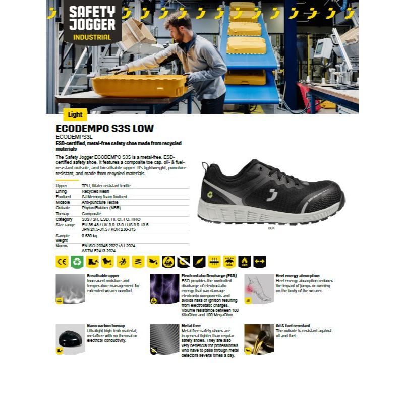 Safety Jogger Composite Toecap - ECODEMPO S3S LOW (Black)