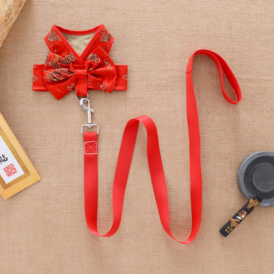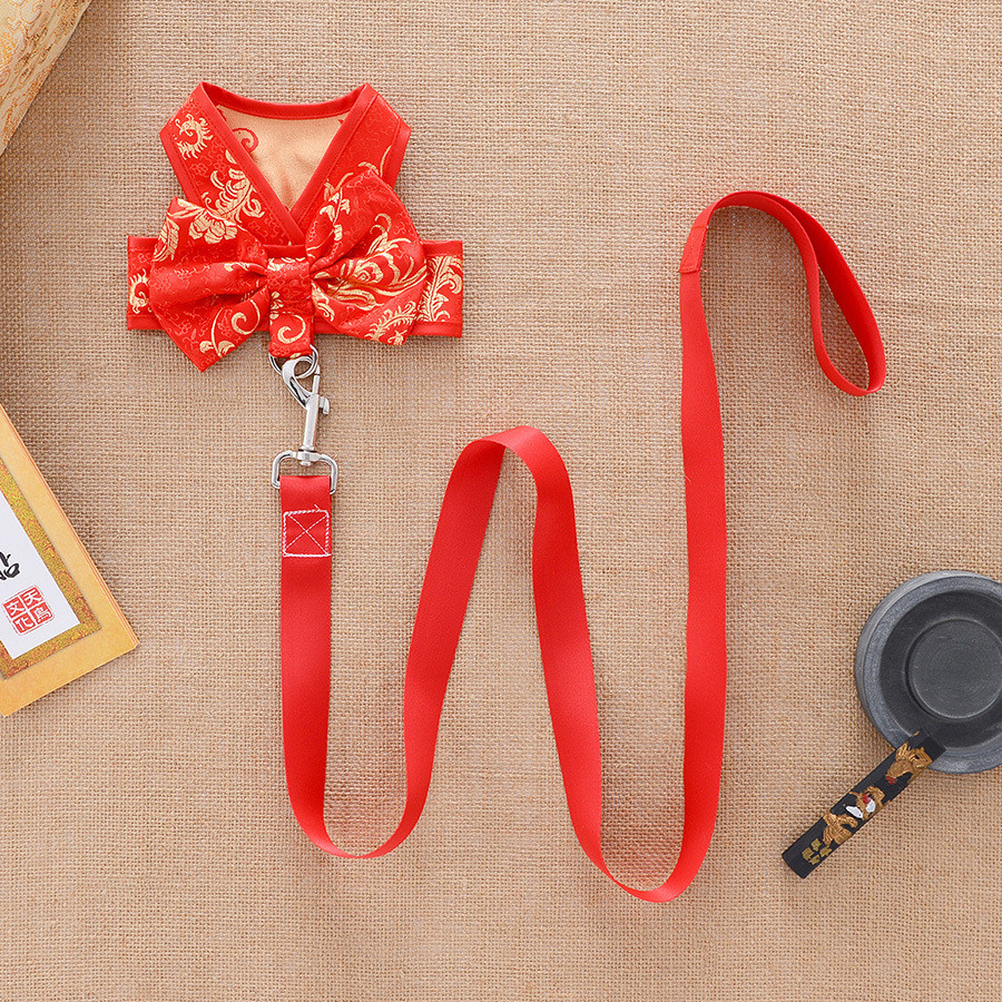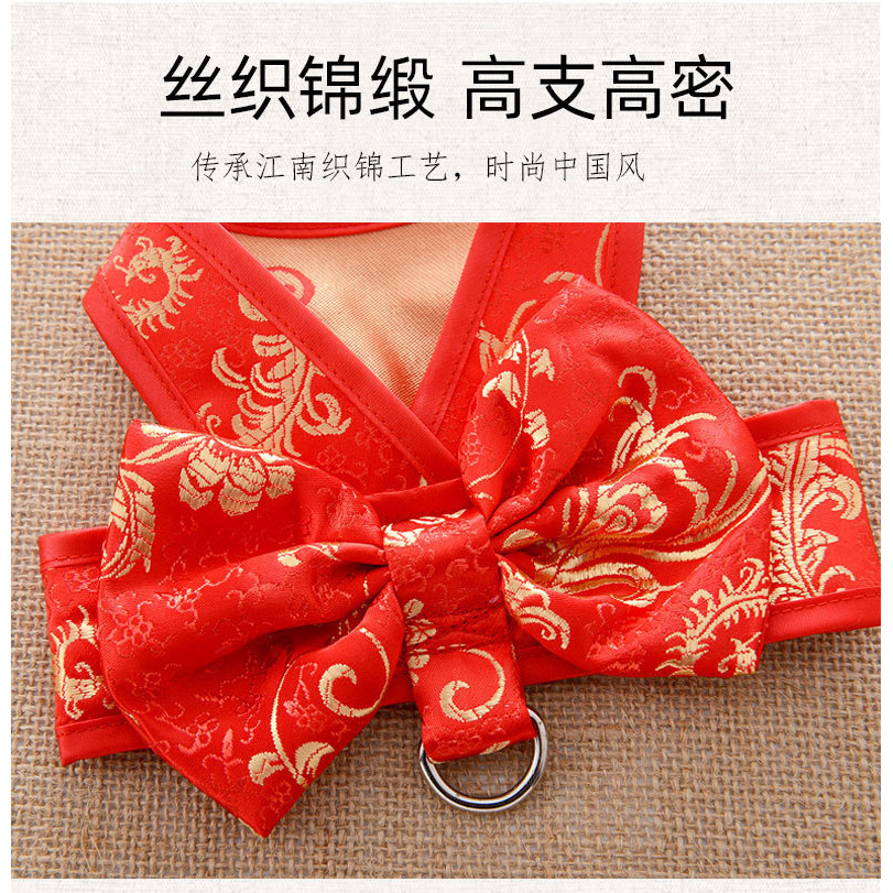 Pawsfun Dog Tang Suit Bow Princess Dress Pet Chest Back Tang Suit Leash Cat Chest Back Thin Hanfu