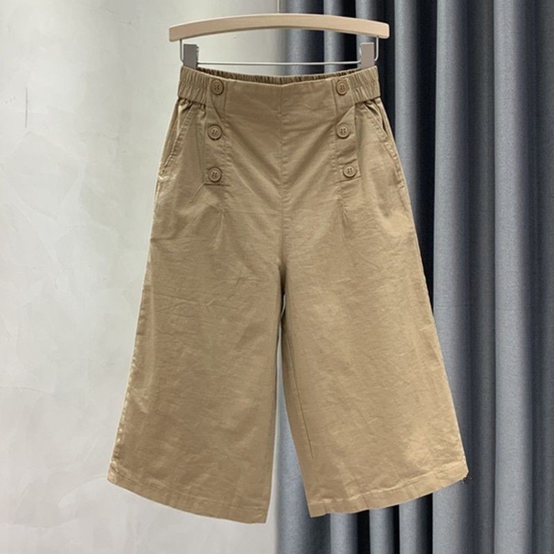 Pure Cotton Casual Pants Elastic Waist Cropped Pants Women Wide-Leg Pants 2024 Thin Style Cropped Pants All-Match Harem Pants 2024.5.26