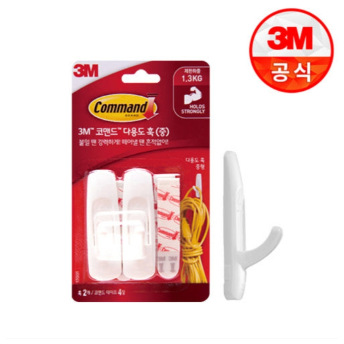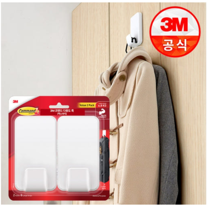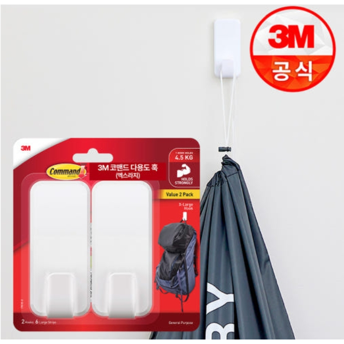 3M™ Command™ White General Purpose Mega Utility Hook Twin Pack, 17011-2ES, 2/Pack, Holds Up to 6.8kg