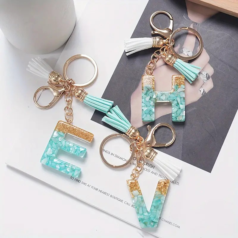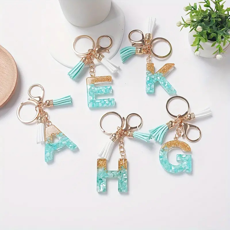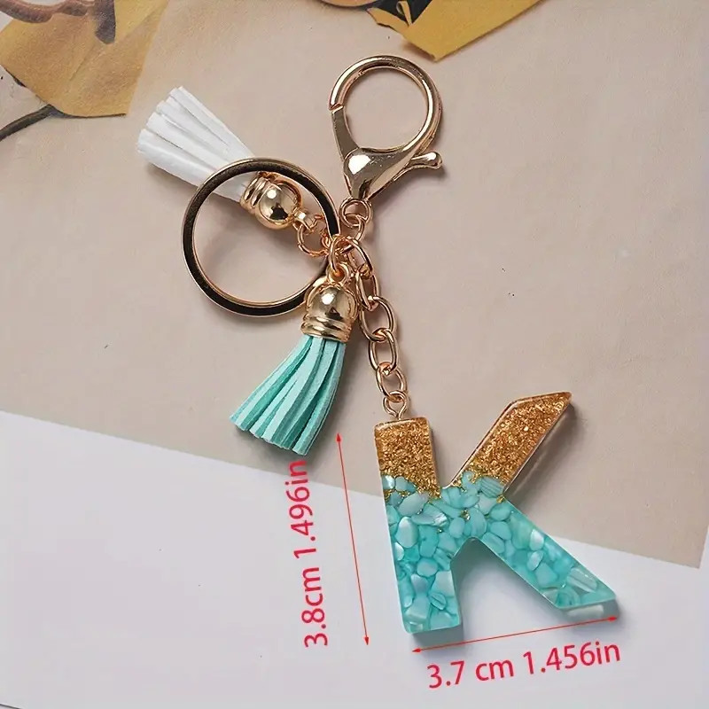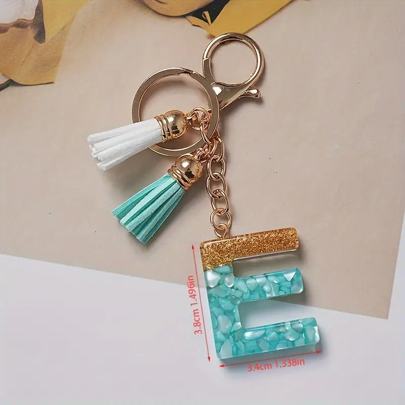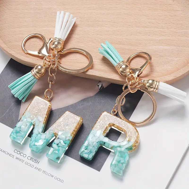 1Pc Alphabet Initial Letter Keychain Cute Double Tassels Resin Key Ring Purse Bag Backpack Charm Earbud Case Cover Key Accessories