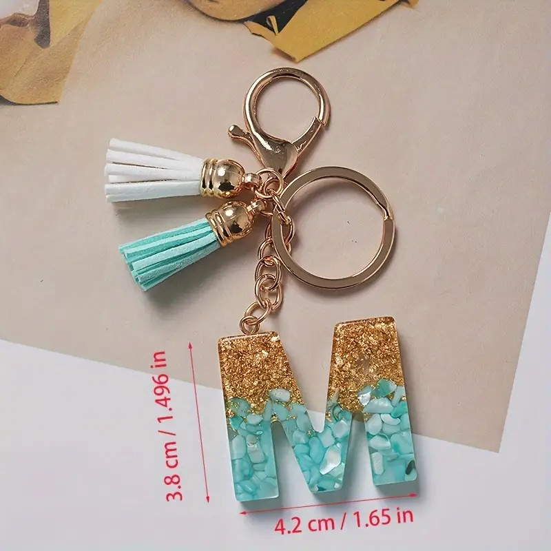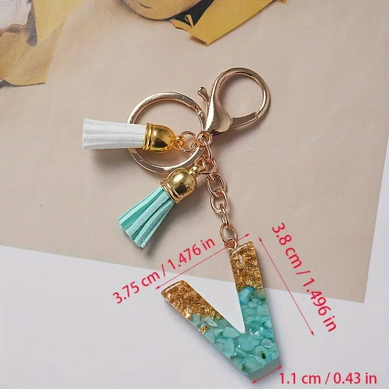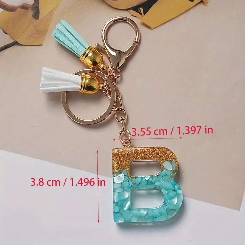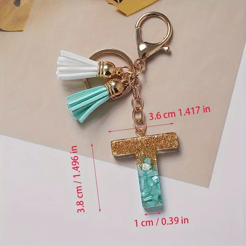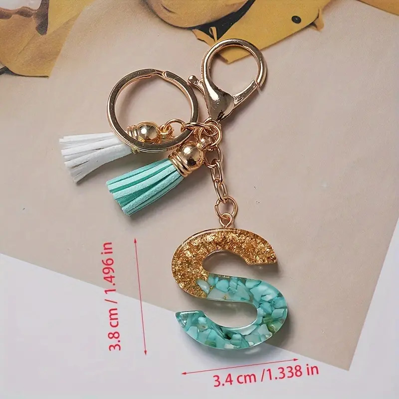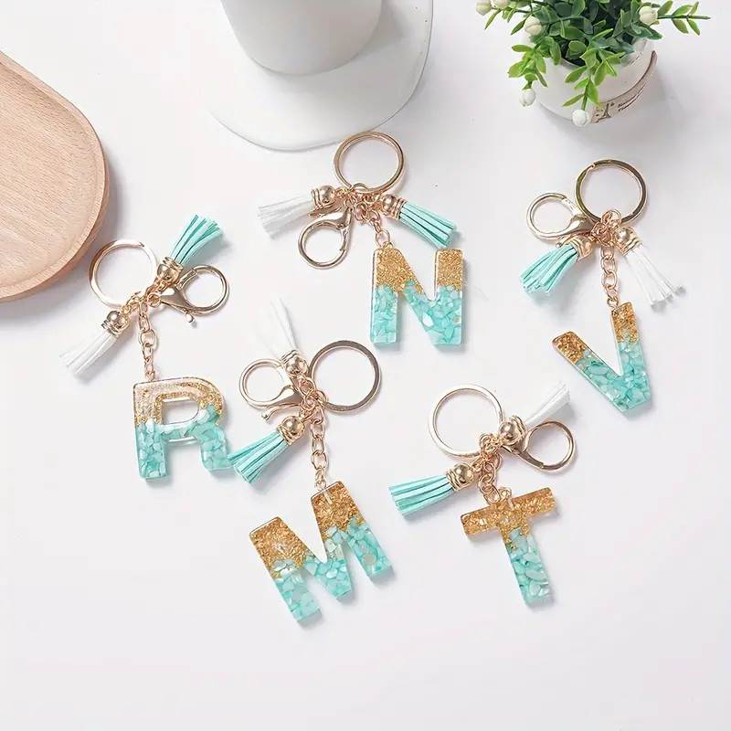 1Pc Alphabet Initial Letter Keychain Cute Double Tassels Resin Key Ring Purse Bag Backpack Charm Earbud Case Cover Key Accessories