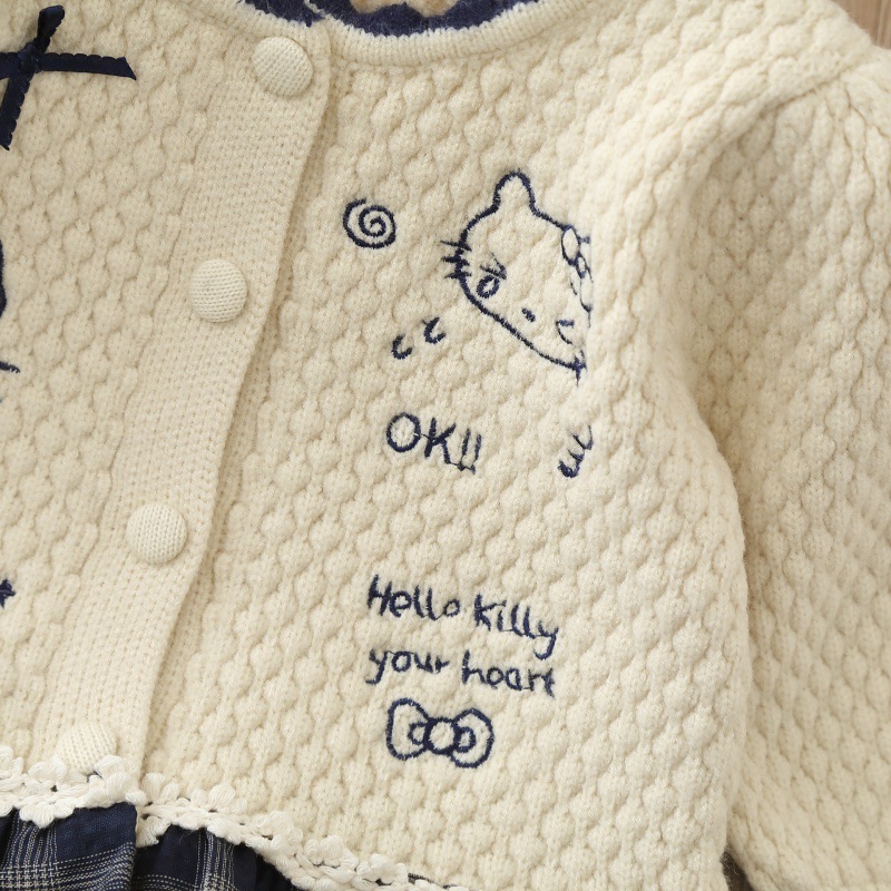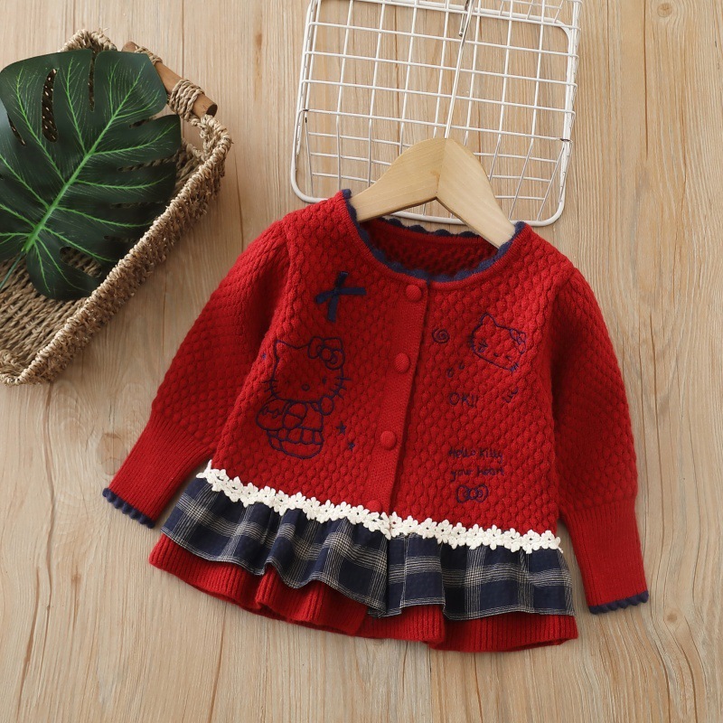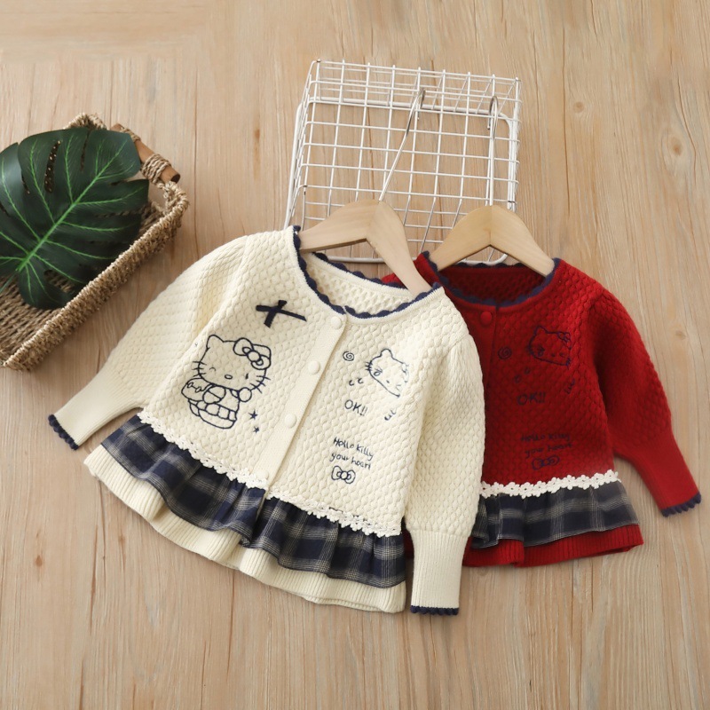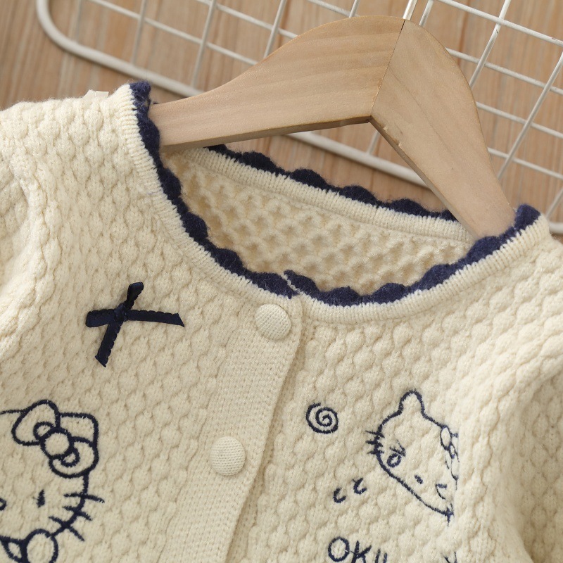 Hello Kitty Children Sweater Cardigan 2025 Spring Autumn Kid Cartoon Knitted Long Sleeve Baby Girls Princess Top 1-8 Years