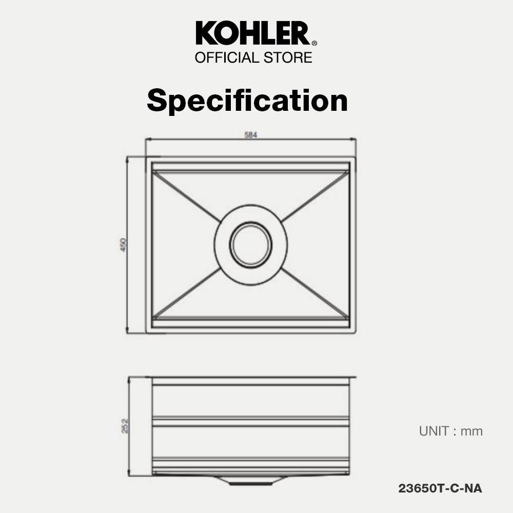 KOHLER Prolific Stainless Steel Undercounter Kitchen Sink 585mm K-23650T-C-NA / 737mm K-23651T-C-NA
