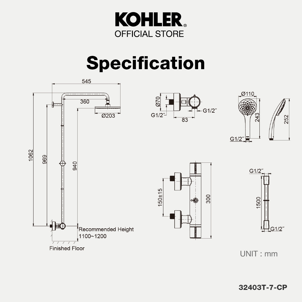 Kohler Atom 2-Way Shower Column, Rainshower and Handshower (Polished Chrome)