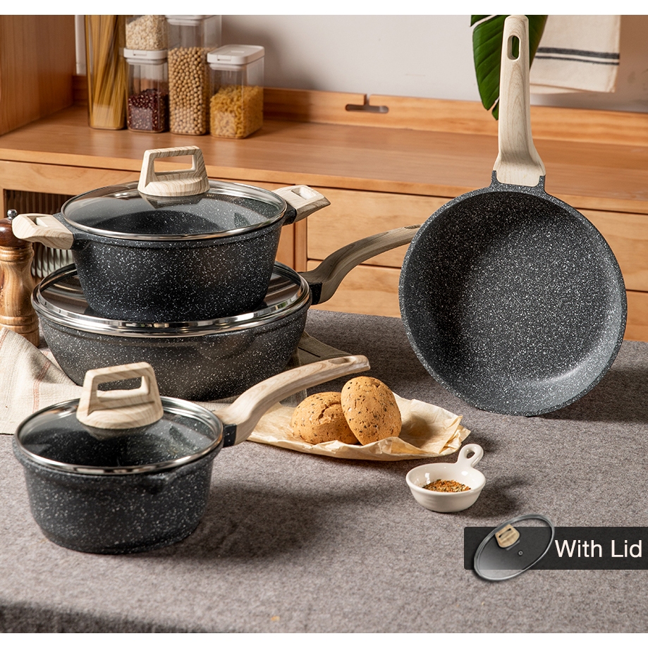 Same Style Non Stick 7pcs Cookware Set Kuali Batu Granite,Healthy Kitchen Cooking Pots,PFOA Free Periuk Set
