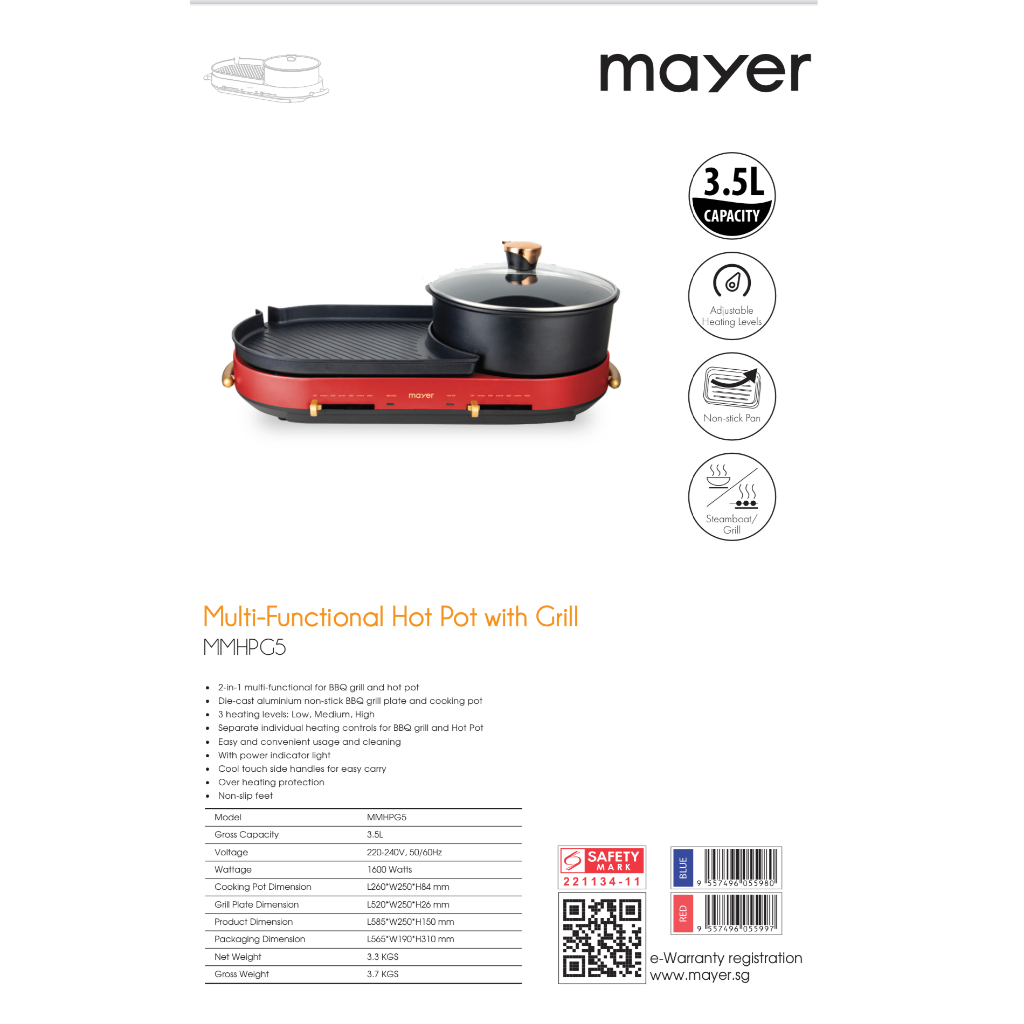 Mayer Multi-Functional Hot Pot with Grill MMHPG5