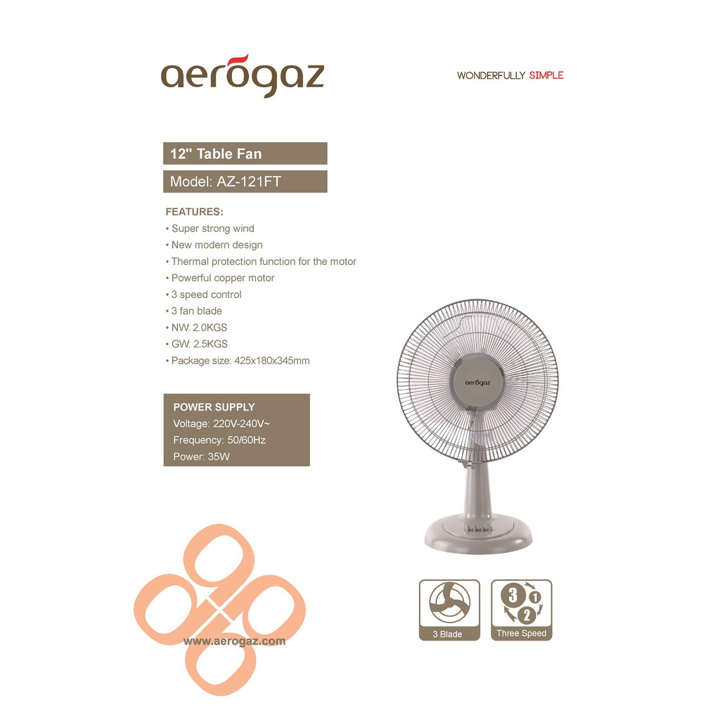 Aerogaz 12" Desk Fan AZ-121FT