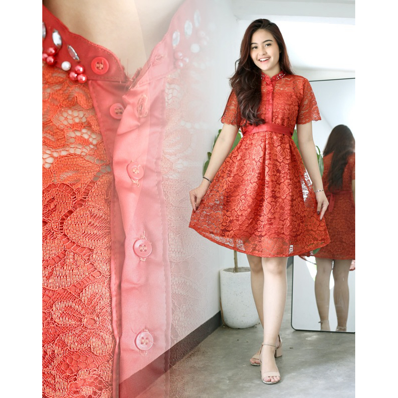 Ready Yunna Brocade Dress Mix Velvet and Sequin Material on the Collar Christmas Dress New Year Dress Jumbo Dress Ld 120 CM