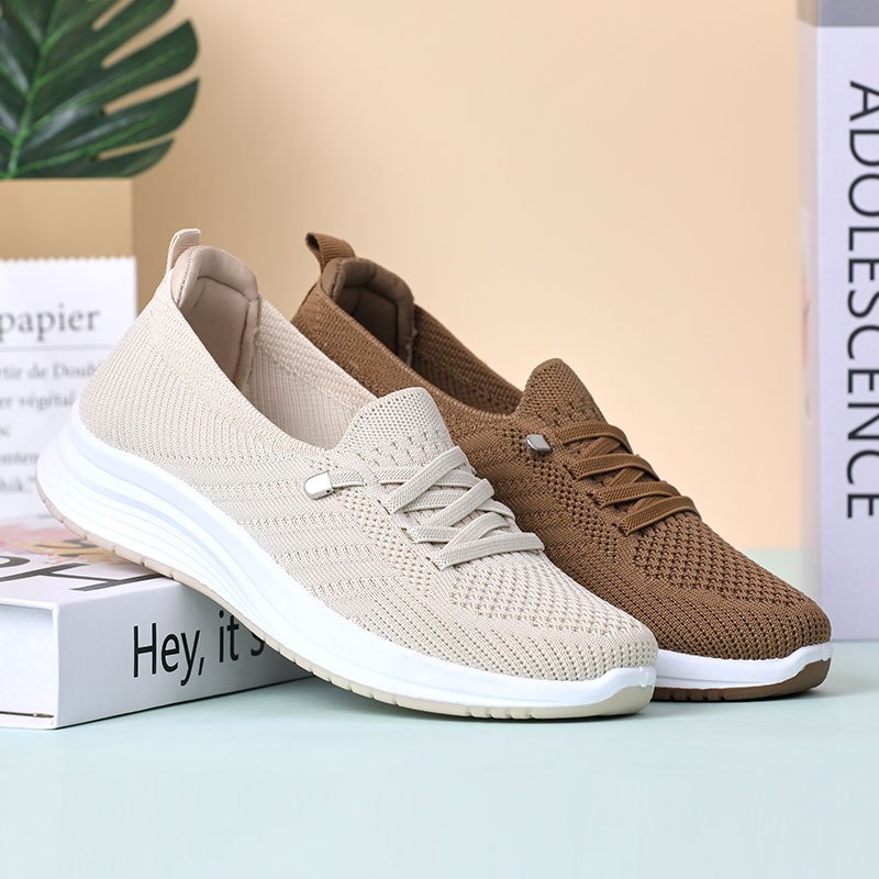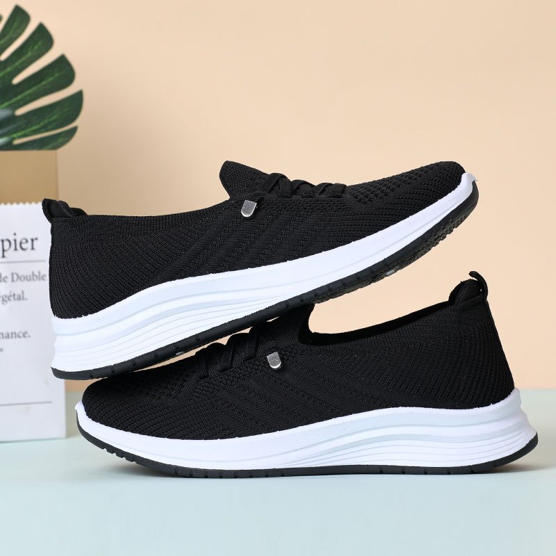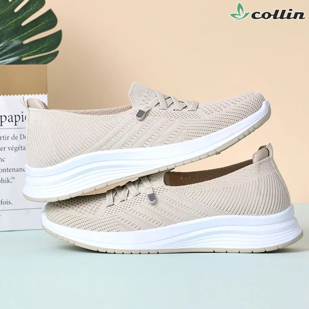 COLLIN Women's Knitted Slip-On Sneakers with Dead Laces, Trendy, Sporty, Comfy - CL5126, WHITE SOLE, white shoes women