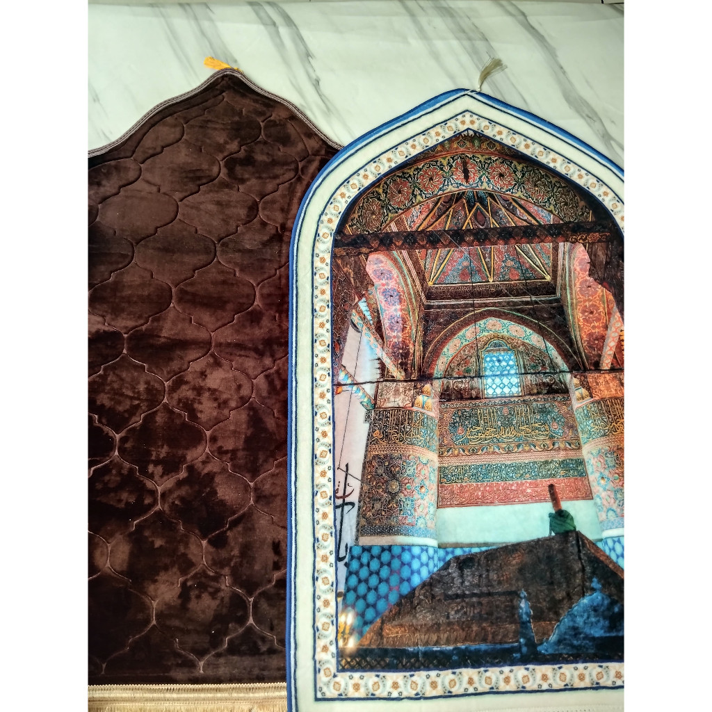 Package contains 2 pieces of Qubah Dome Couple Prayer Rugs for a Pair of Parents and Children, Large and Medium Sizes, Midi