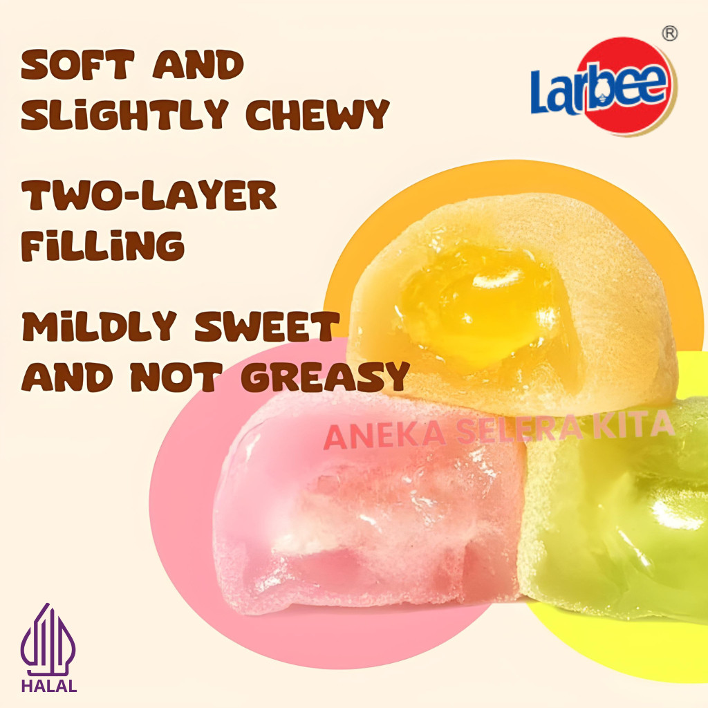 Larbee Mochi with Strawberry, mango, Green Grape & Sesame Flavors - Halal 180g Mochi Snack