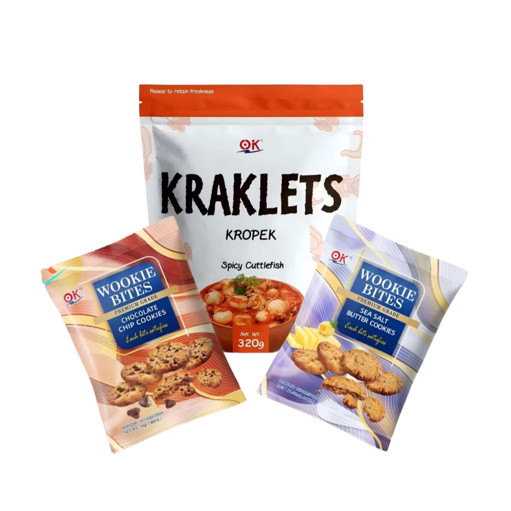 [OK Snacks][3 in 1 set]Kraklets Kropek 320g+Wookie Bites 30g-Chocolate Chip+Sea Salt Butter 30g