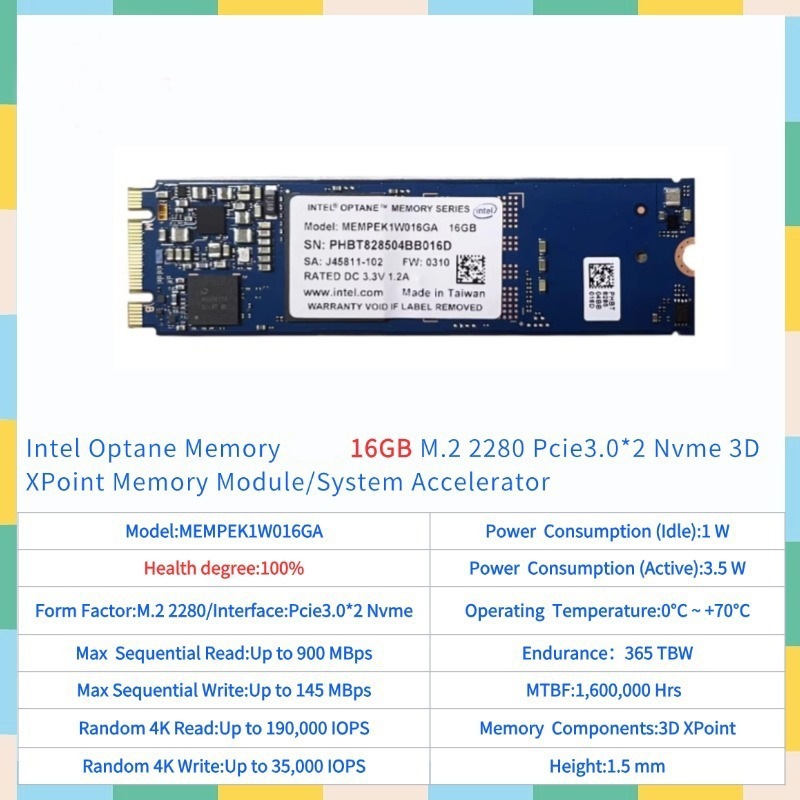 Intel Optane Memory16GB M.2 2280 Pcie3.0*2 Nvme 3D XPoint Memory Module/System (Used)