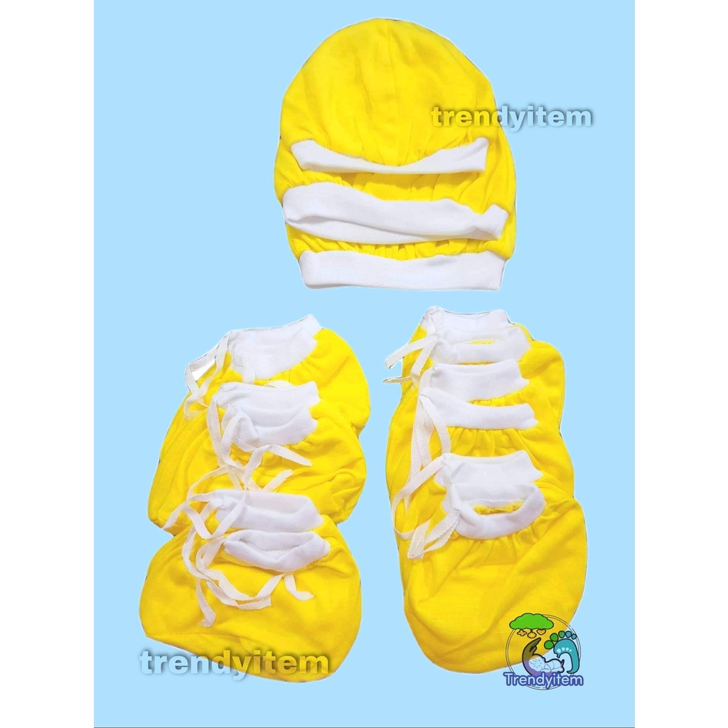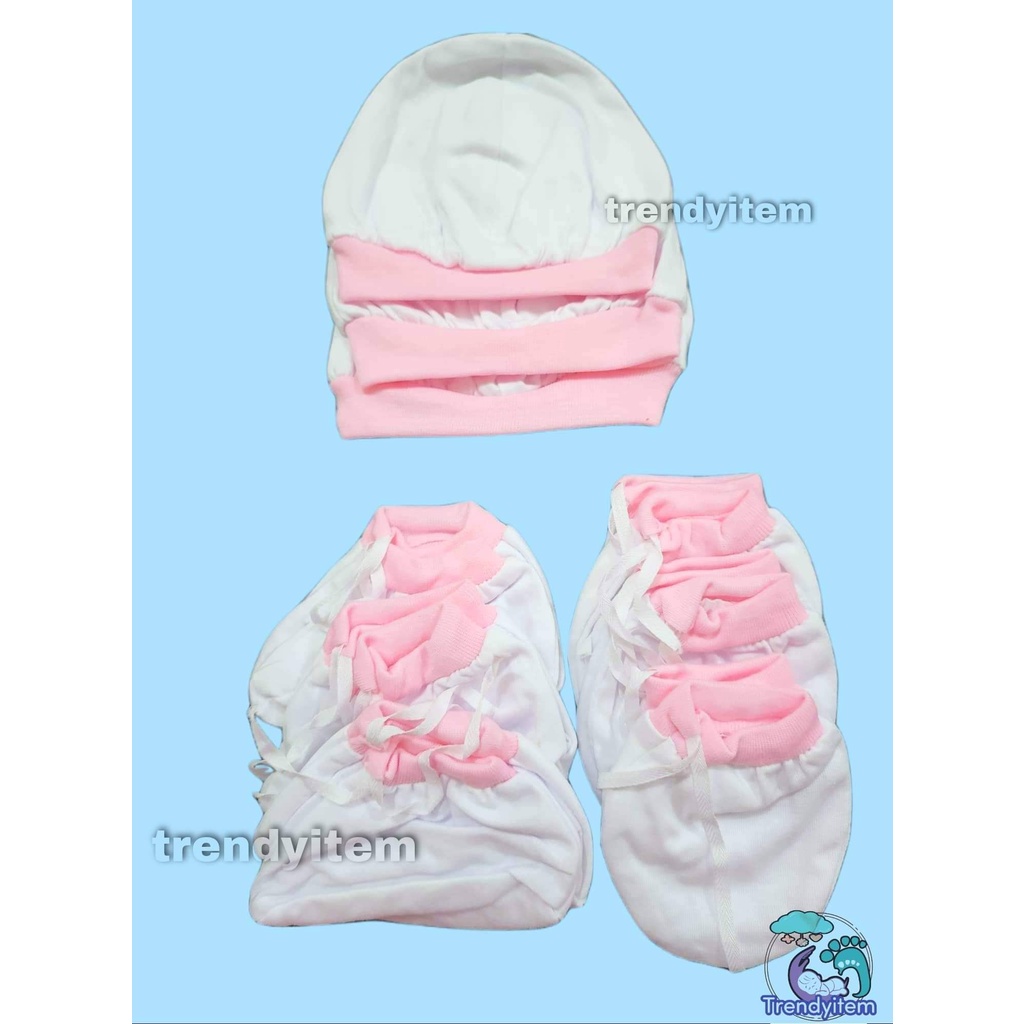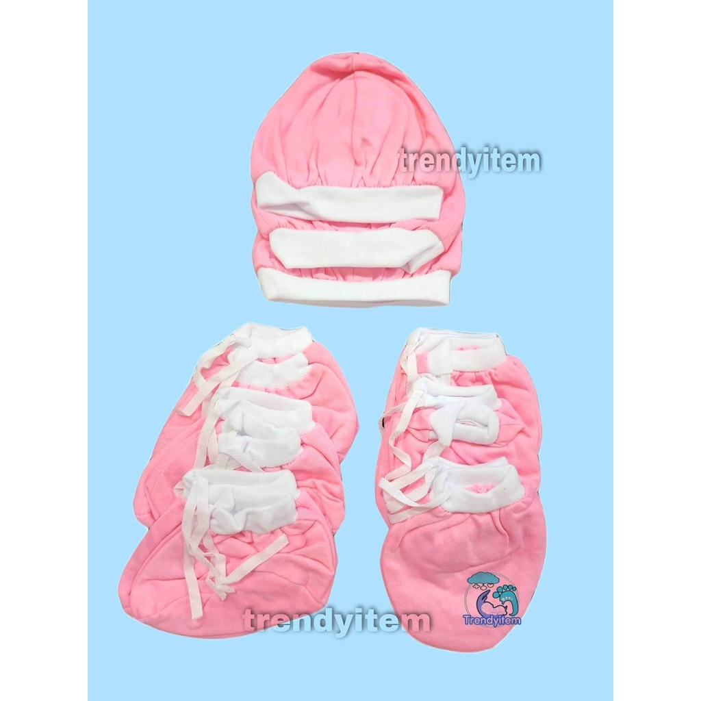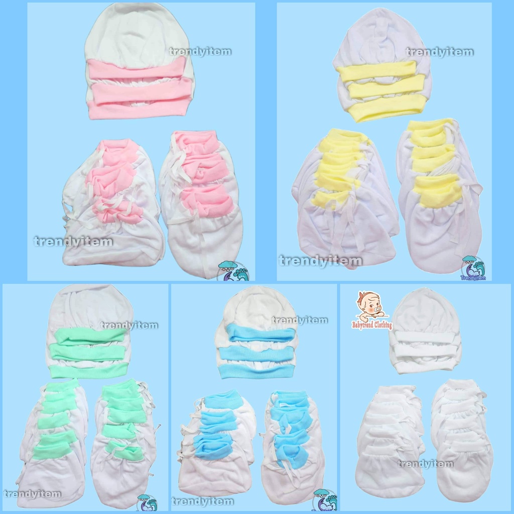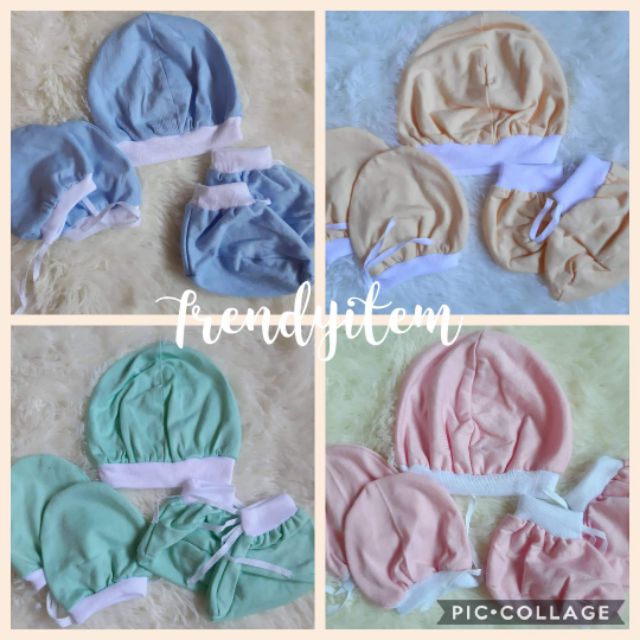 Newborn set ( Mittens, Boties & hat / bonet ) Plain Colored And Bias Colored Cotton