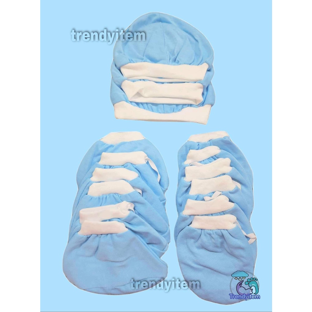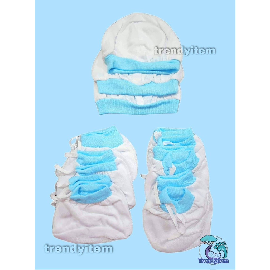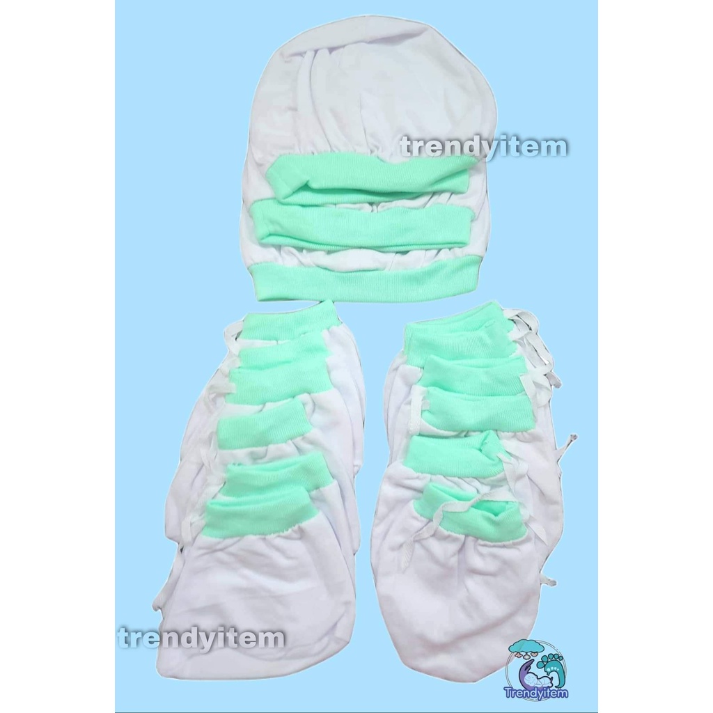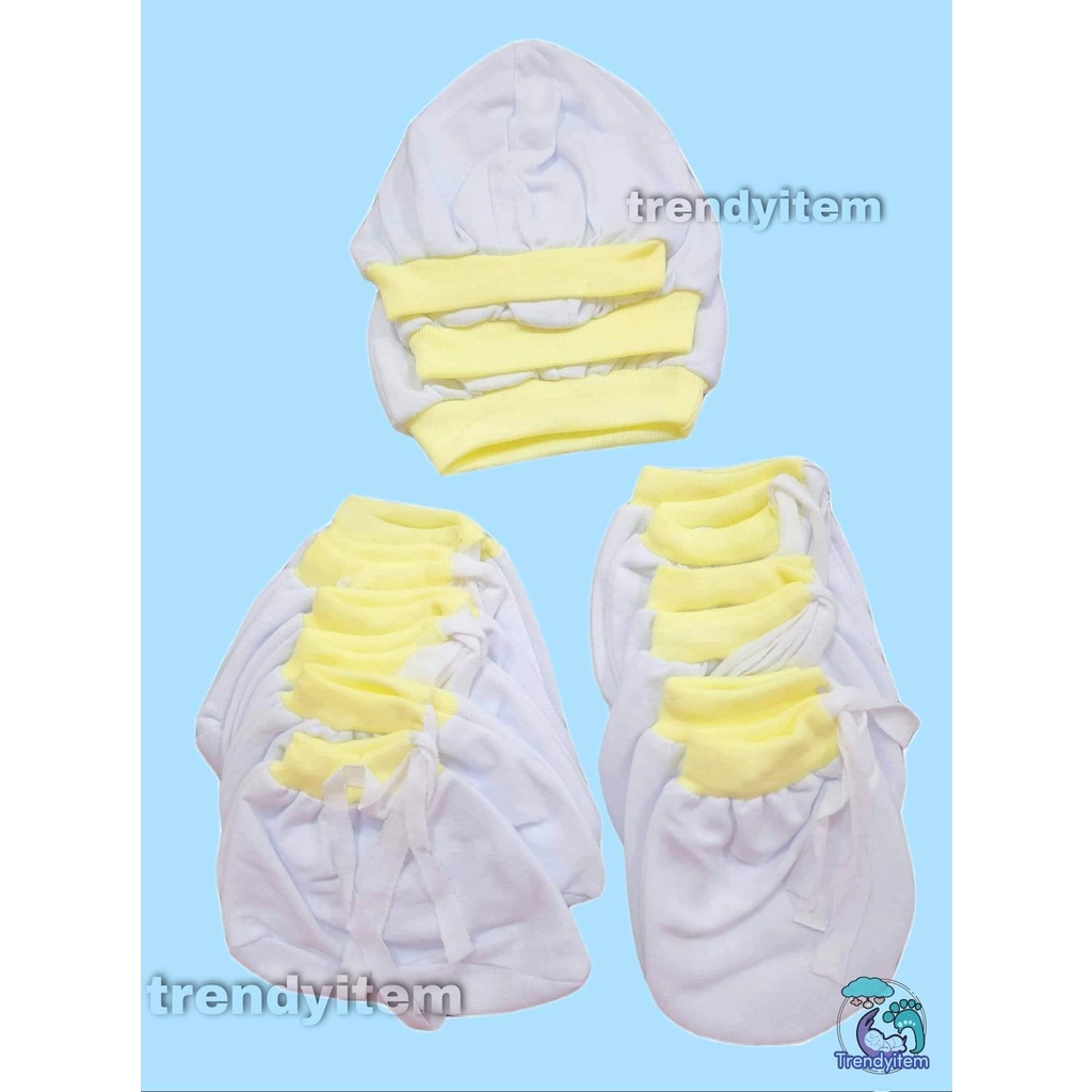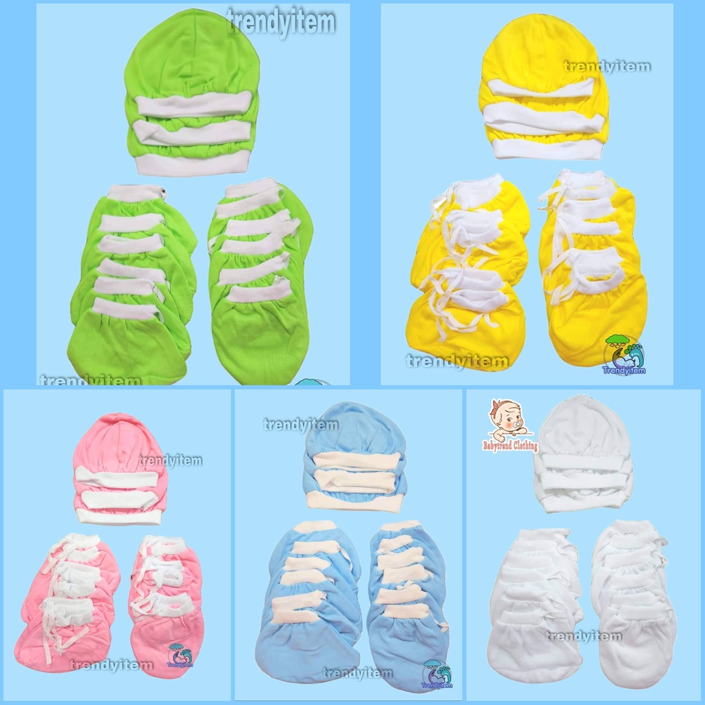Newborn set ( Mittens, Boties & hat / bonet ) Plain Colored And Bias Colored Cotton