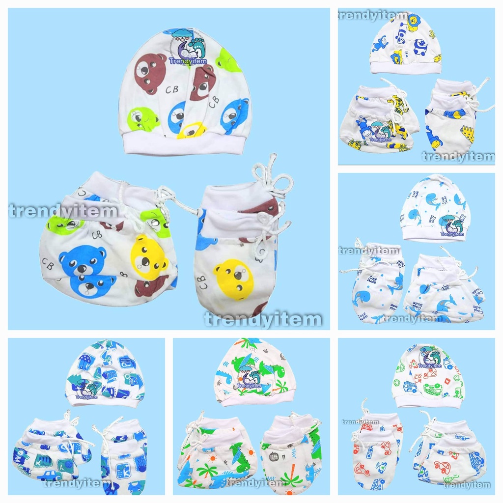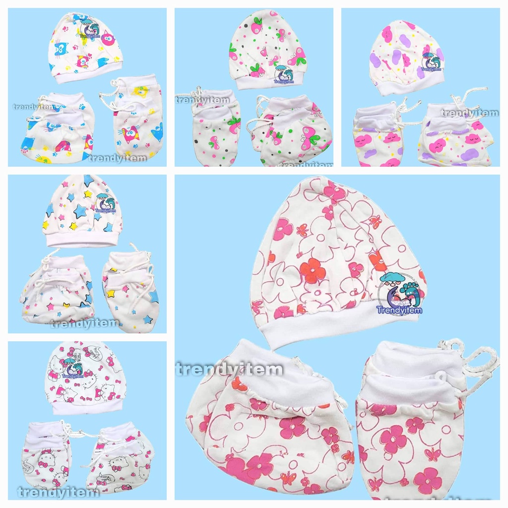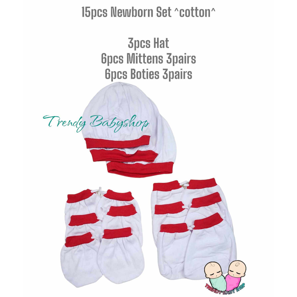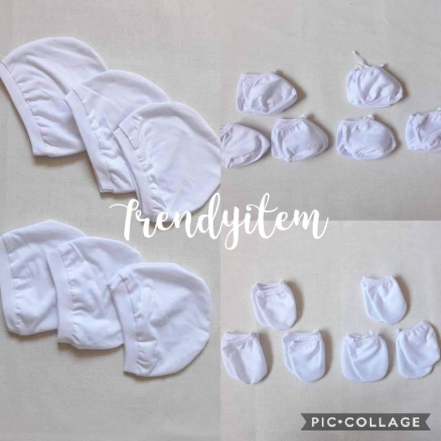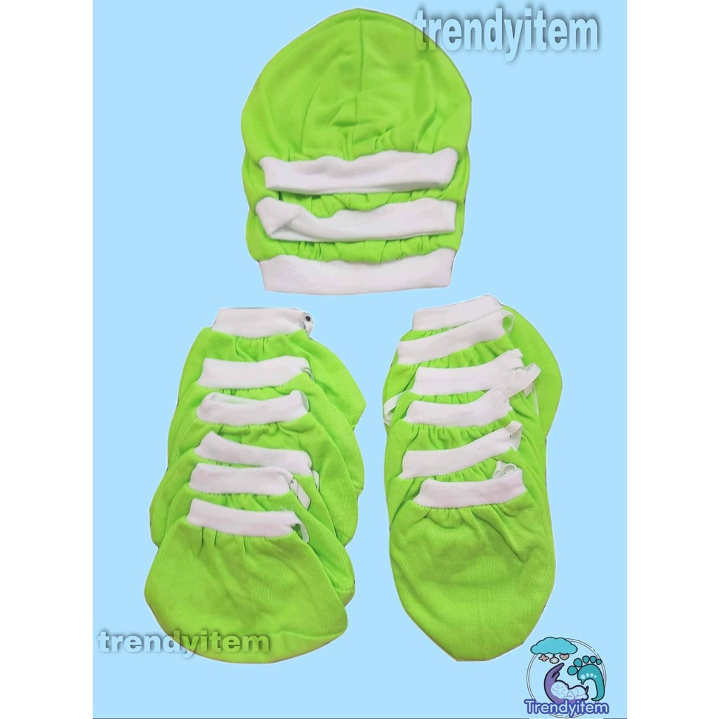Newborn set ( Mittens, Boties & hat / bonet ) Plain Colored And Bias Colored Cotton