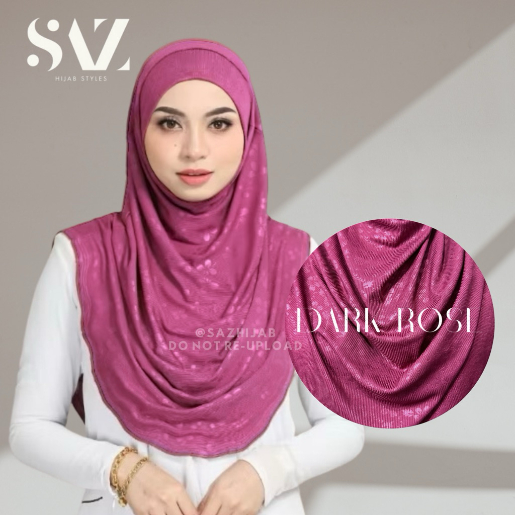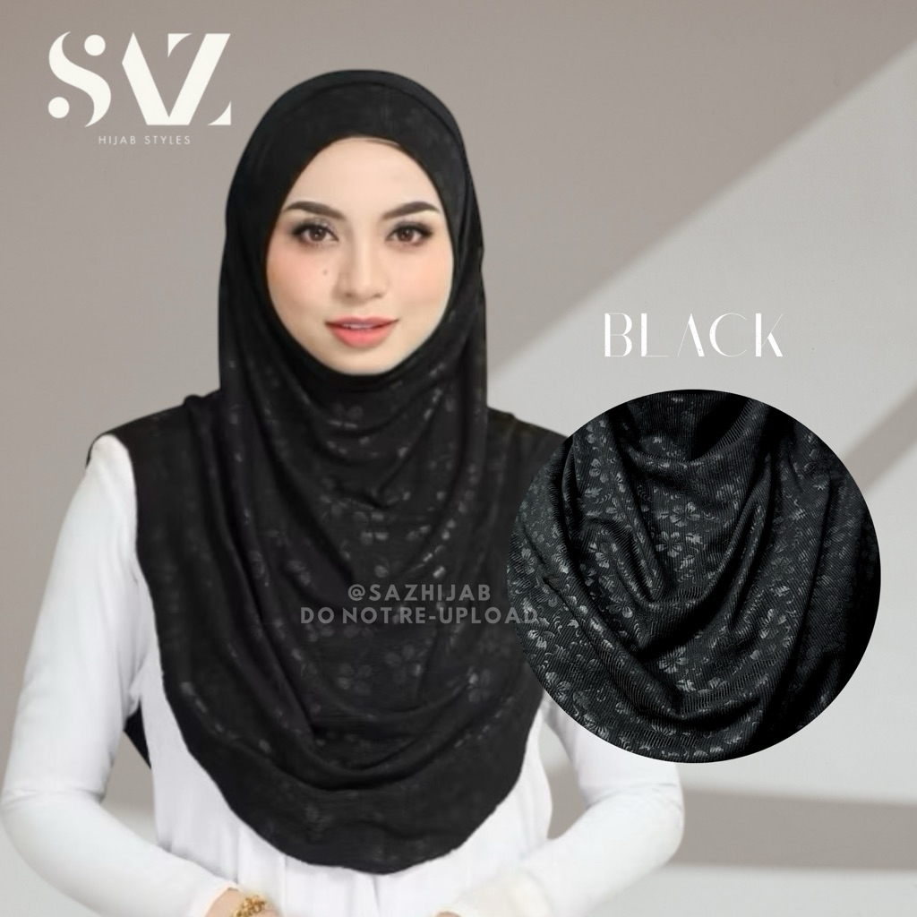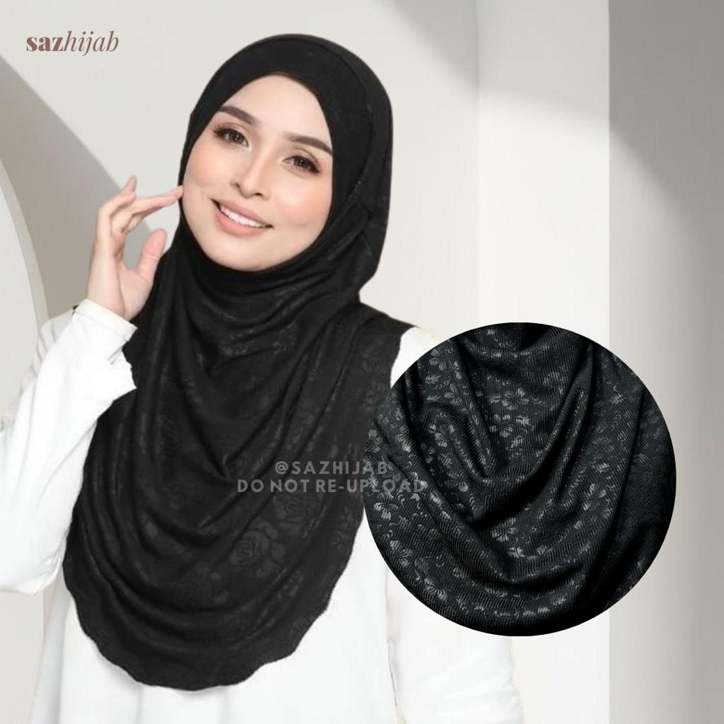 SAZ 3D EMBOSSED Floral Print So-Kindly Instant Hijab Malaysian Sukob / Misre