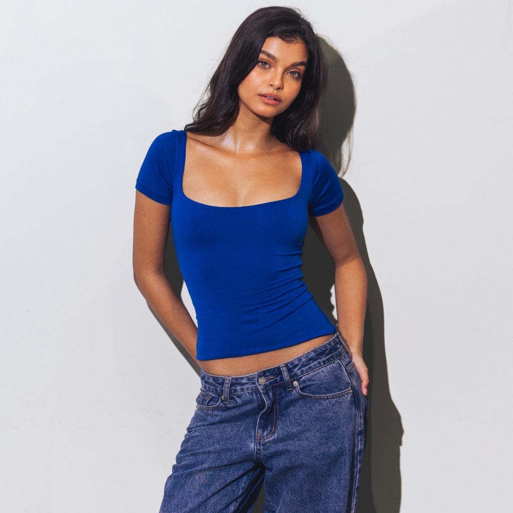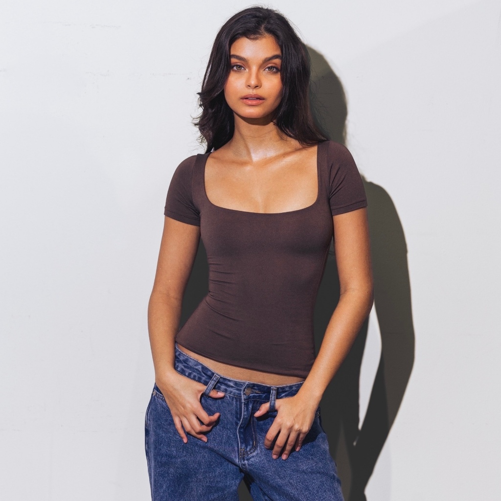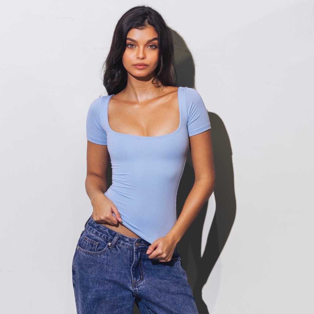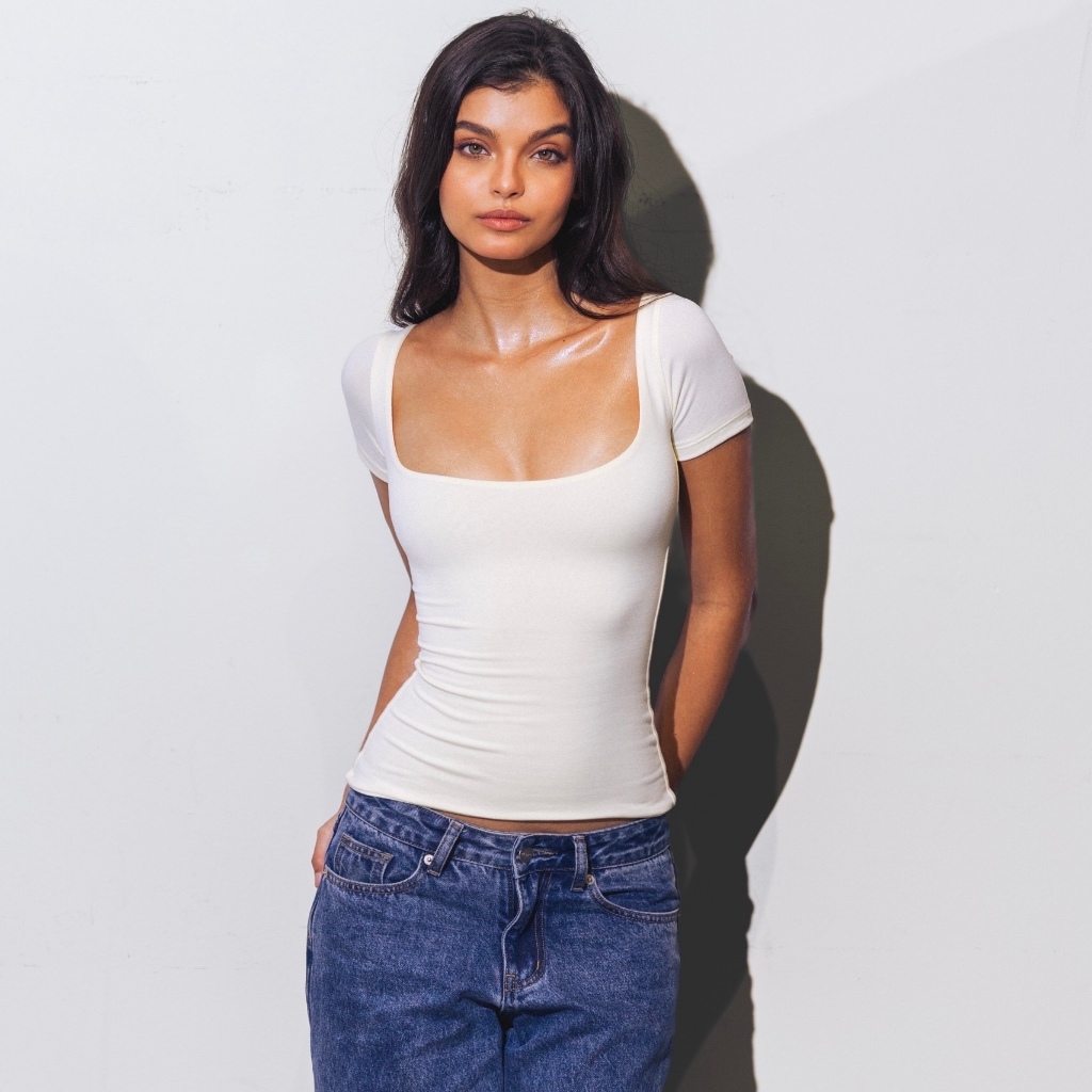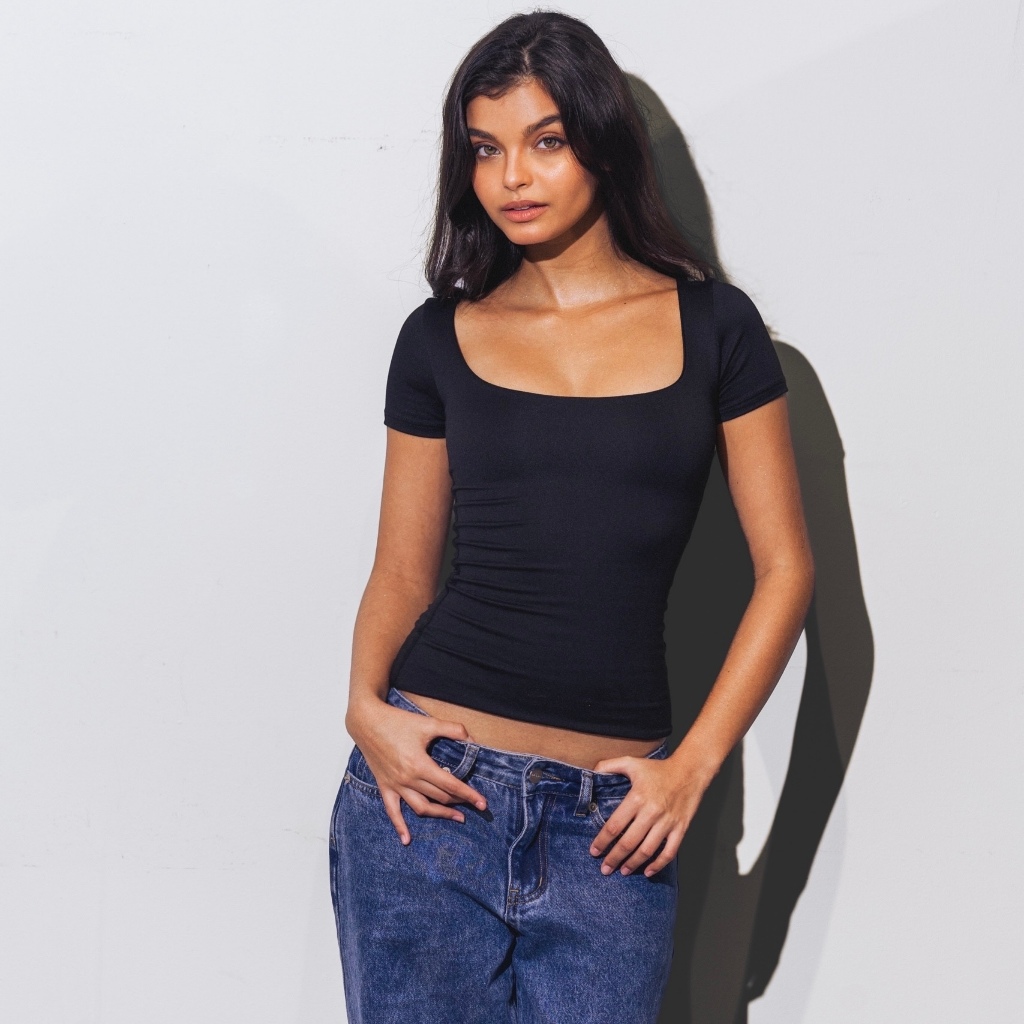Mera Martina Scoop Neck Top Slim-fitting Womenswear Cotton Plain Basic Fabric Spandex