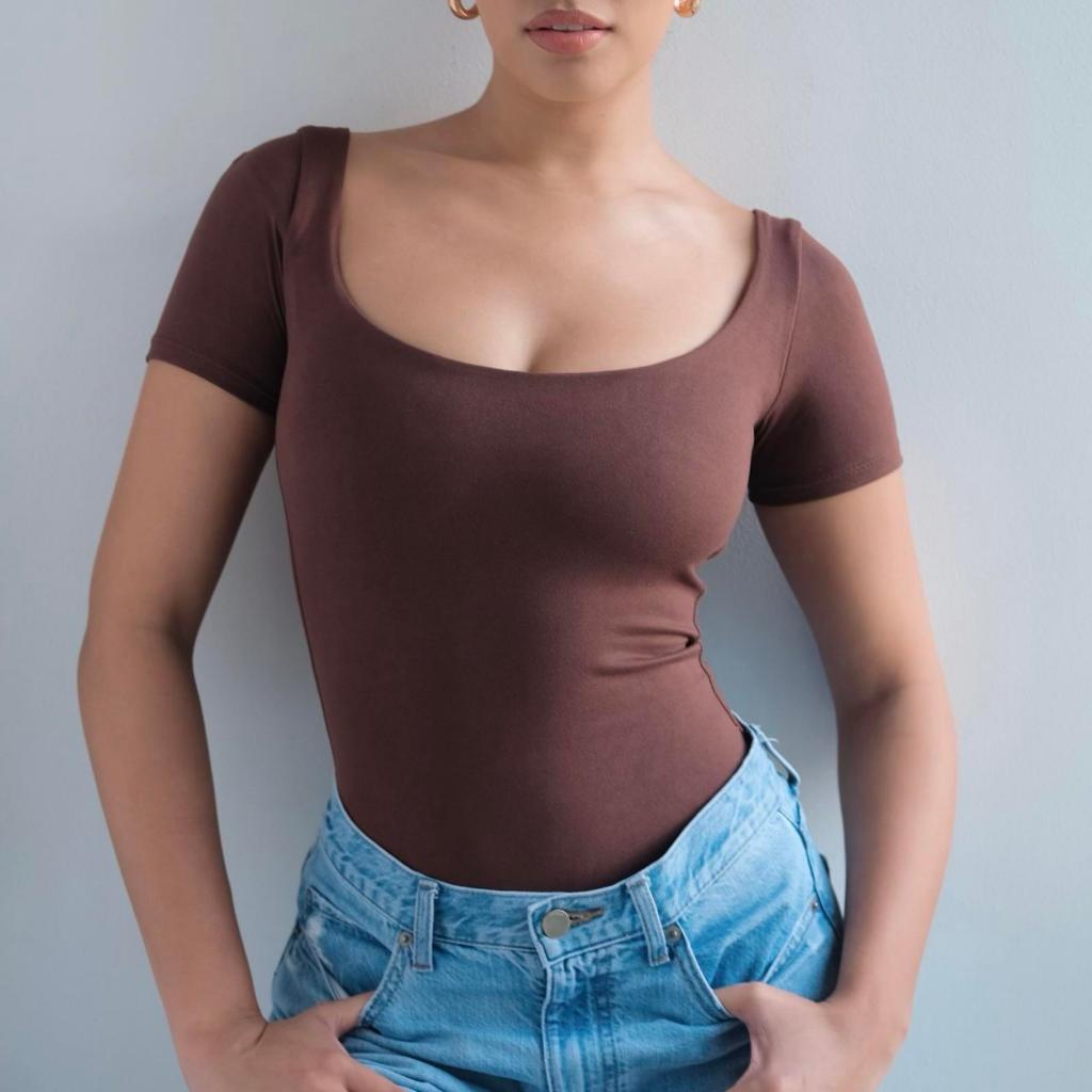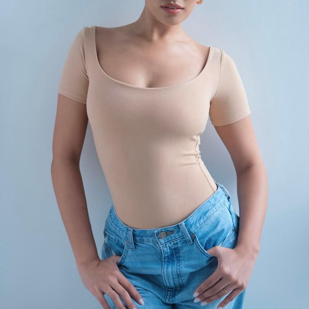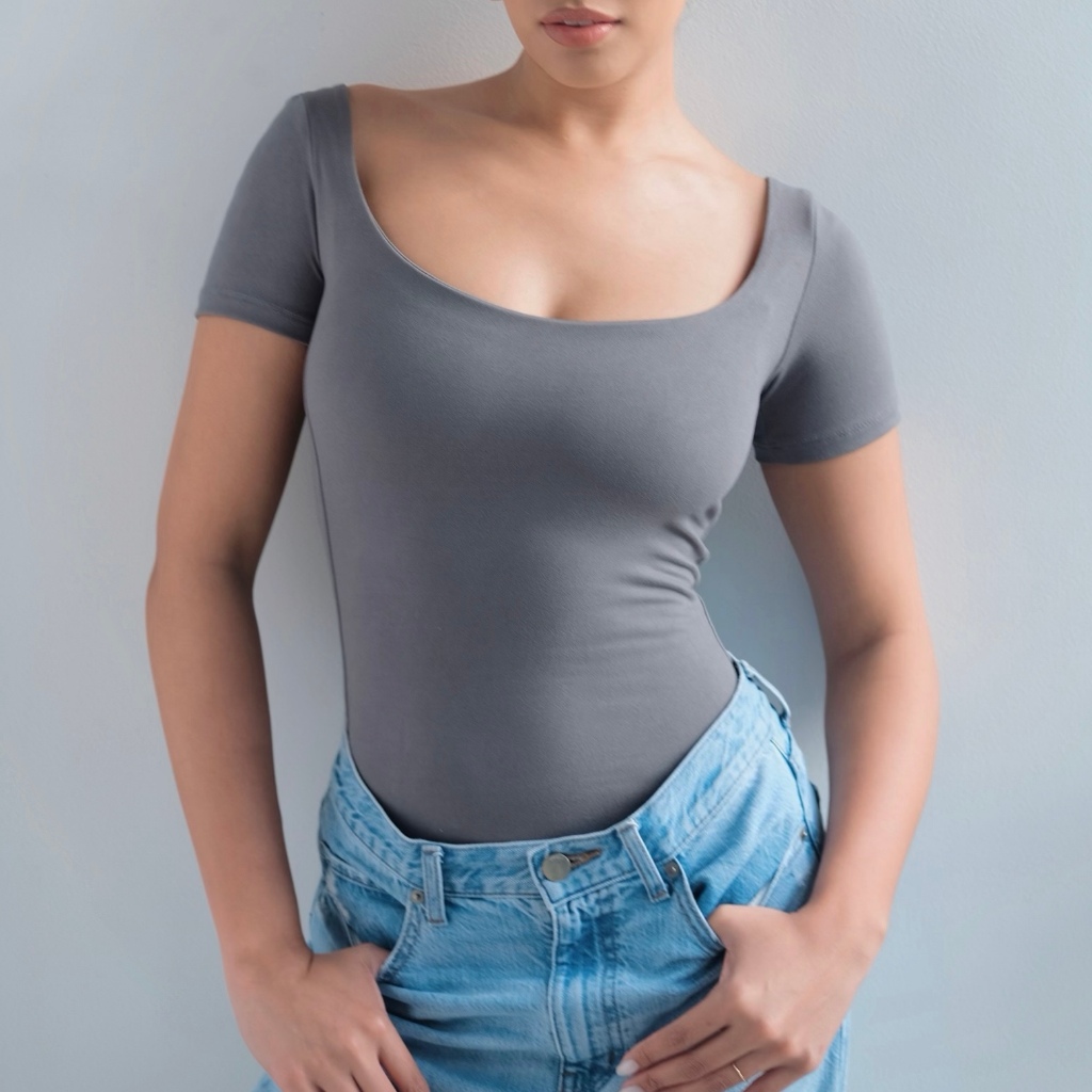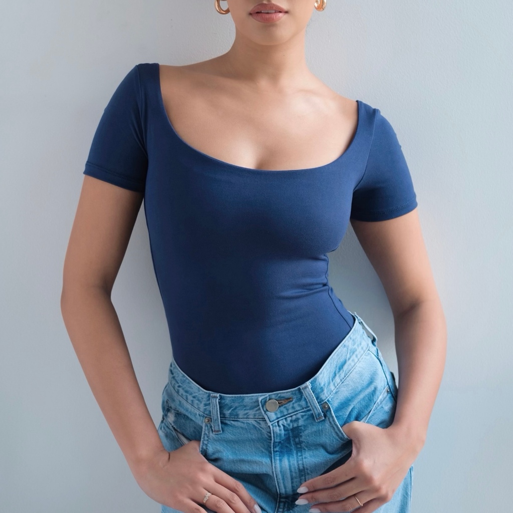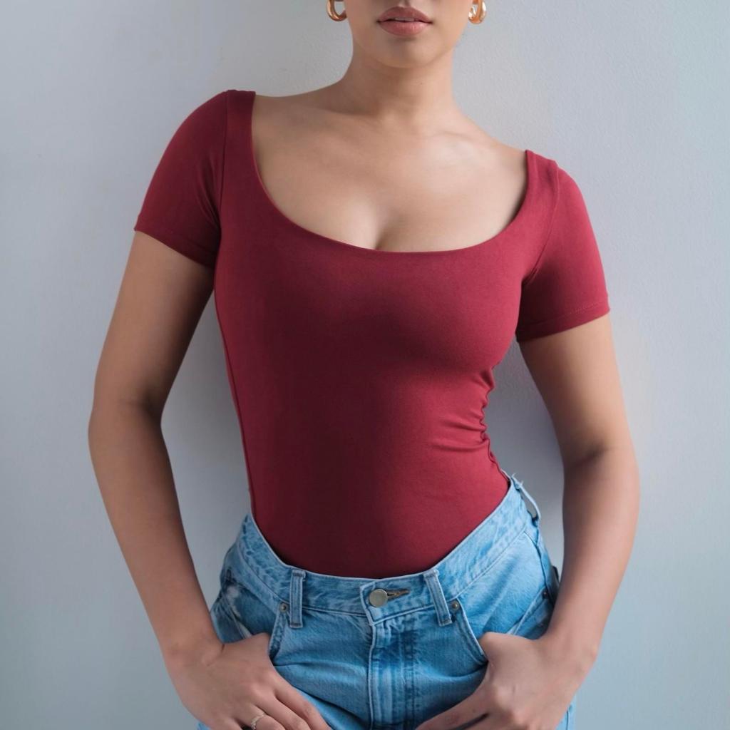 Mera Martina Scoop Neck Top Slim-fitting Womenswear Cotton Plain Basic Fabric Spandex