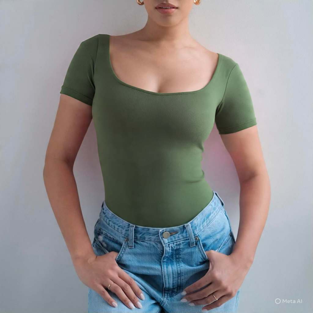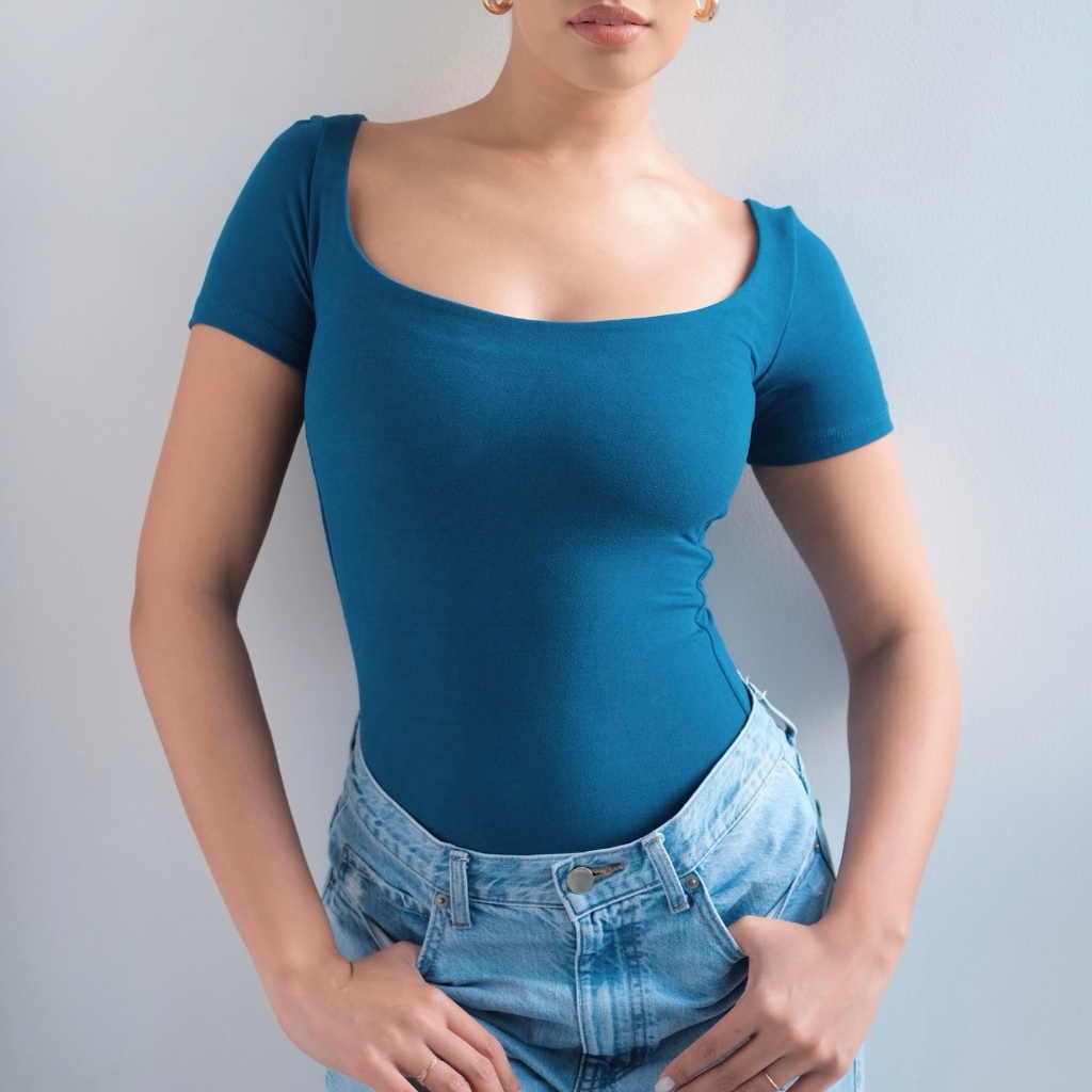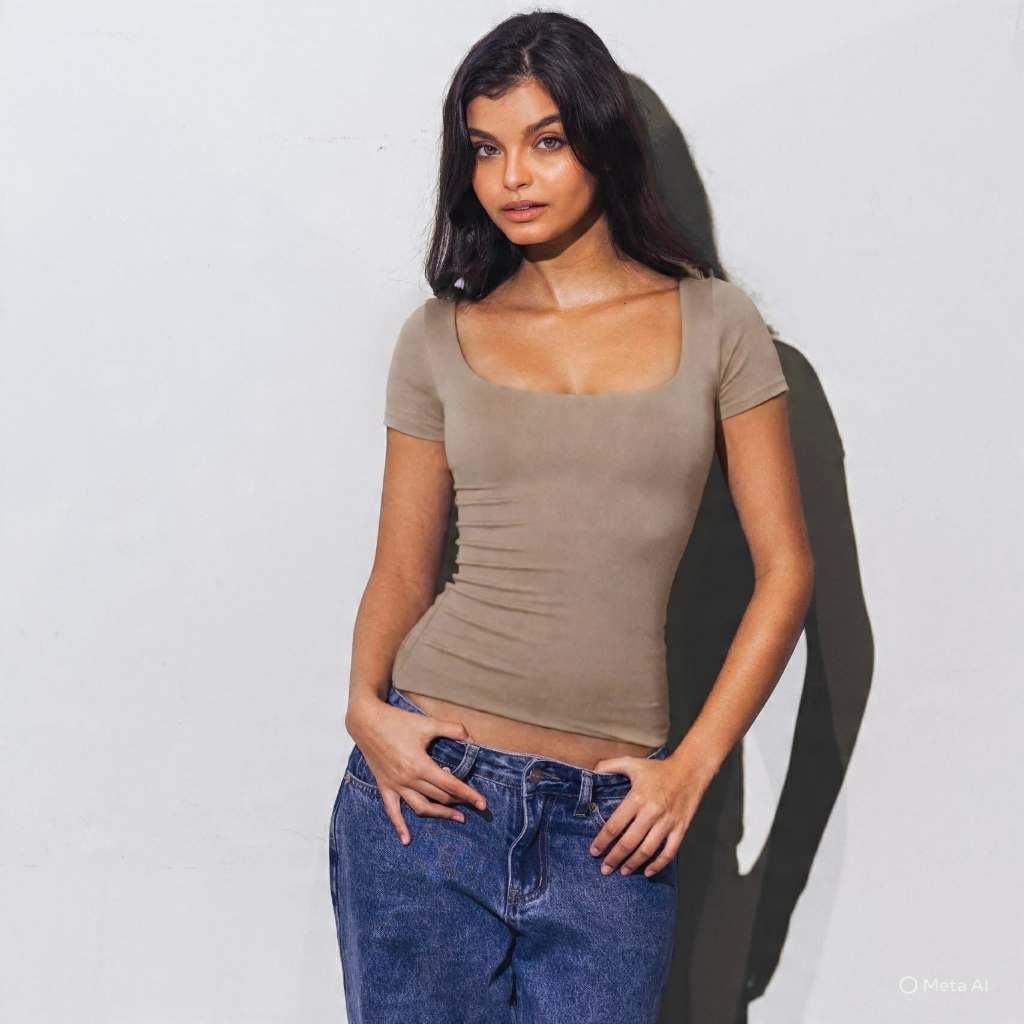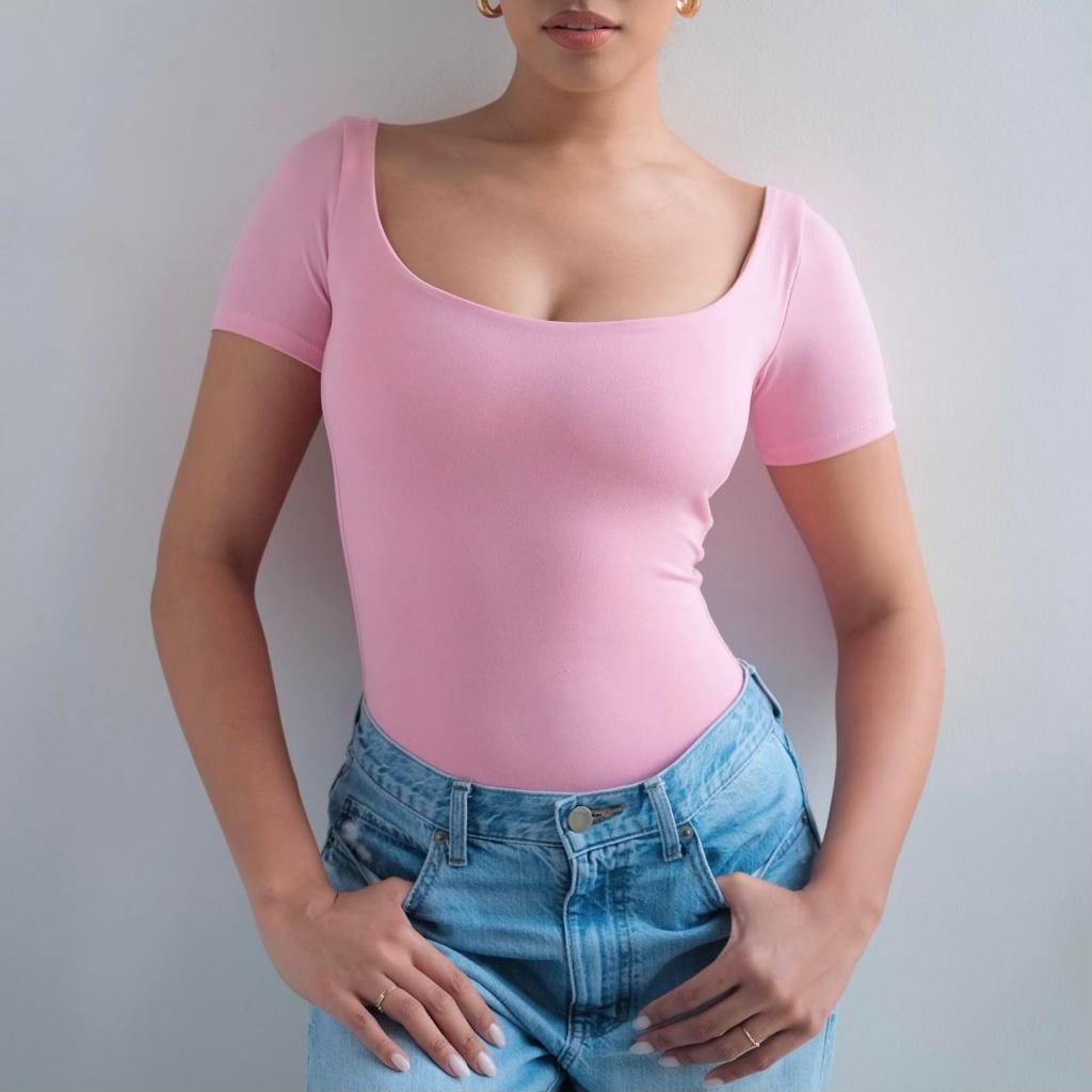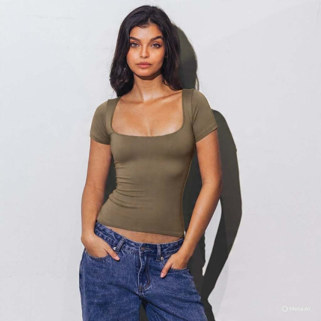 Mera Martina Scoop Neck Top Slim-fitting Womenswear Cotton Plain Basic Fabric Spandex