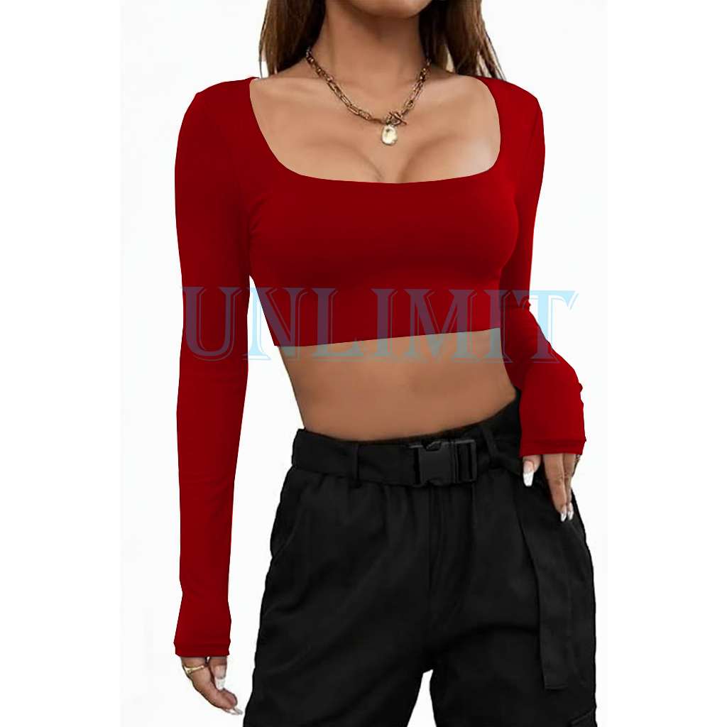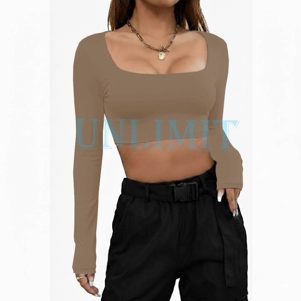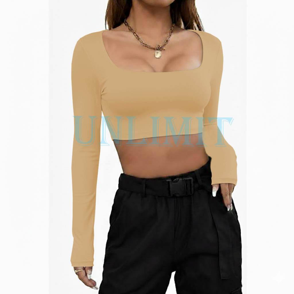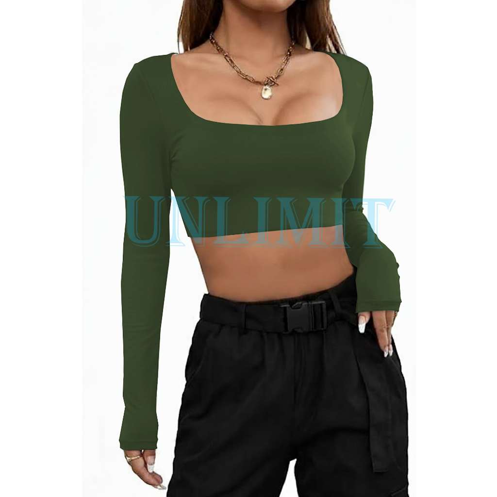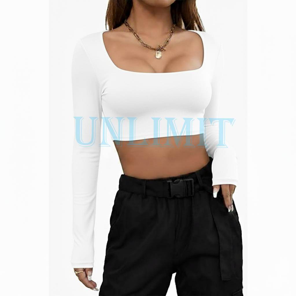 Buy 1&Take 2 Double Lining Square Neck Long Sleeves Top Body Hugging Top Cotton Spandex