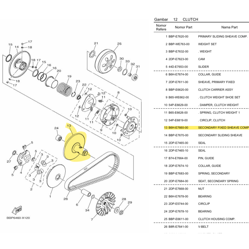 ORIGINAL YAMAHA AEROX155 NMAX155 CVT REAR PULLEY SECONDARY FIXED SHEAVE(B6H-E7660-00) TORQUE DRIVEN