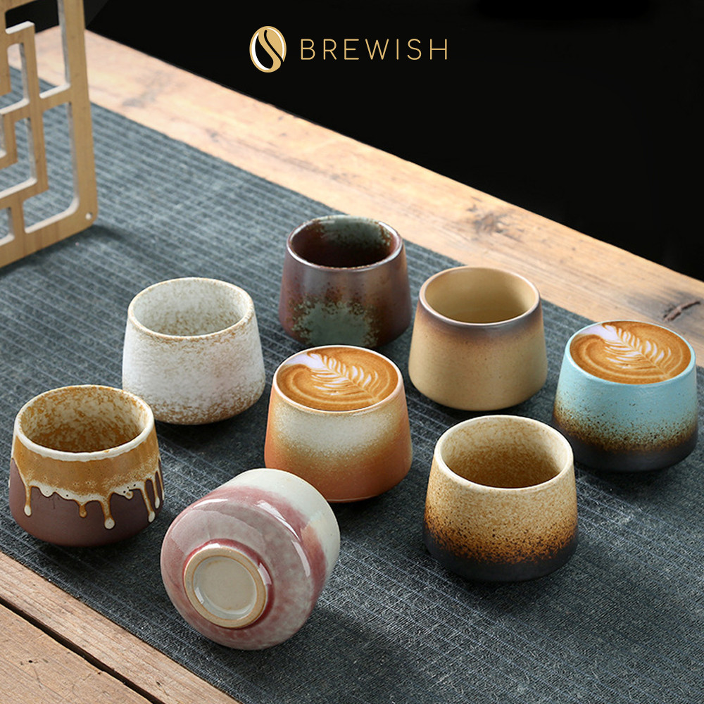 BREWISH Retro Japanese Ceramic Cup Espresso Tea Cup Milk Pottery Kiln Glazed Ceramic Mug Cawan Seramik 陶瓷杯