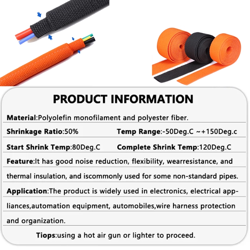 New Braided Cable Sleeve PET Heat Shrink Tube Insulation Flam Retardant Shrinkable Wrap Sheath Wire Organizer Protection