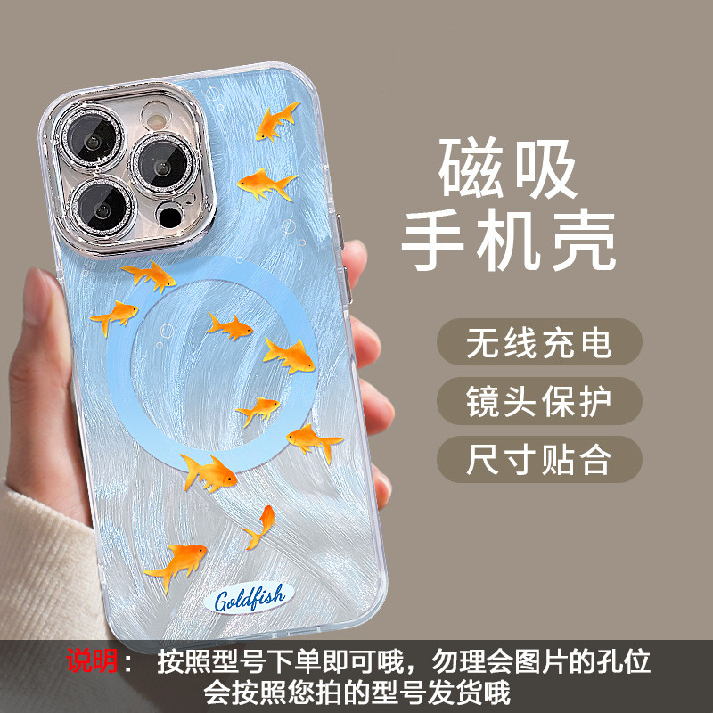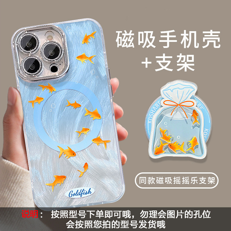 Goldfish Shaking Music Magnetic Bracket Suitable for Apple 16promax Phone Case 15 Comes with Lens Film 13 Feather Yarn 14