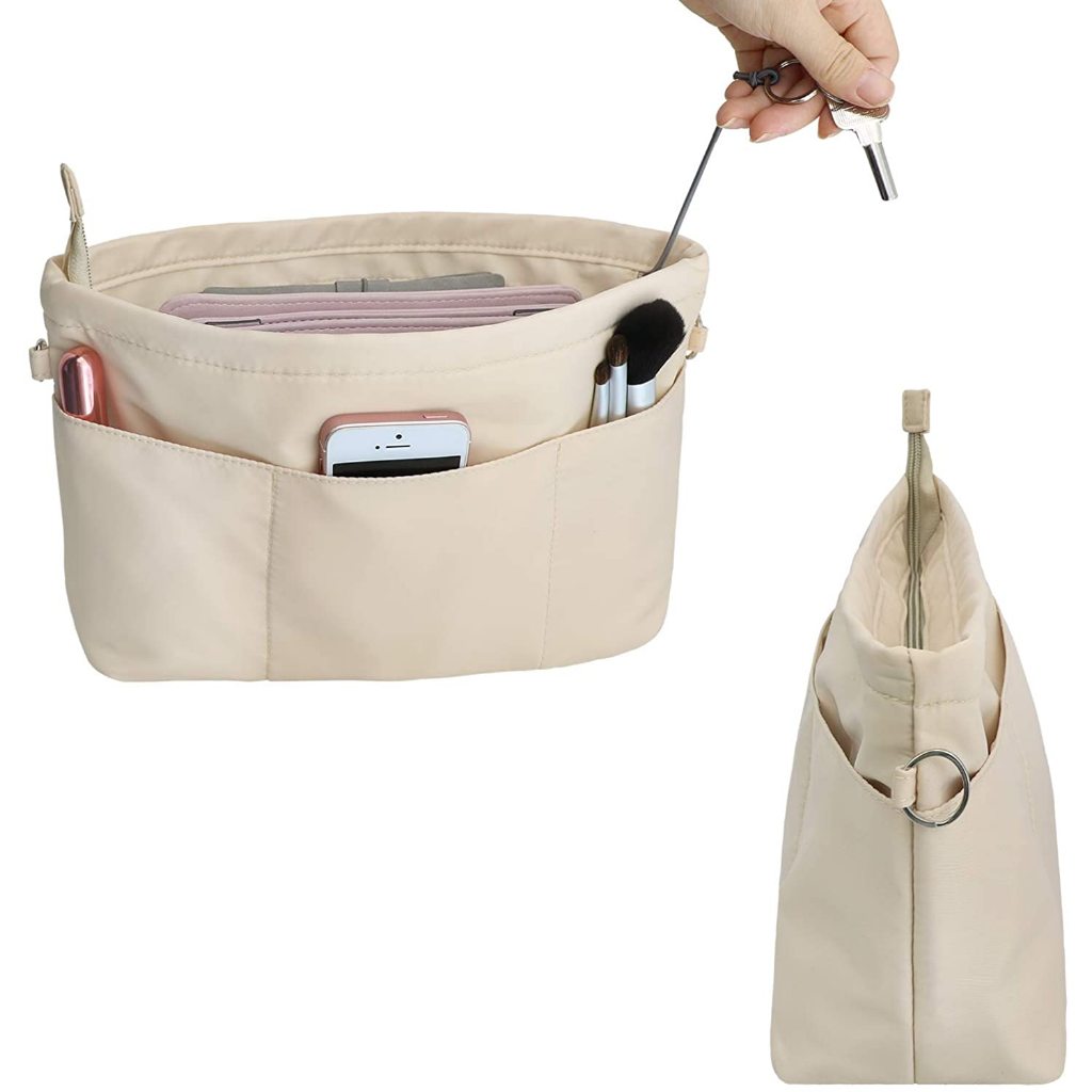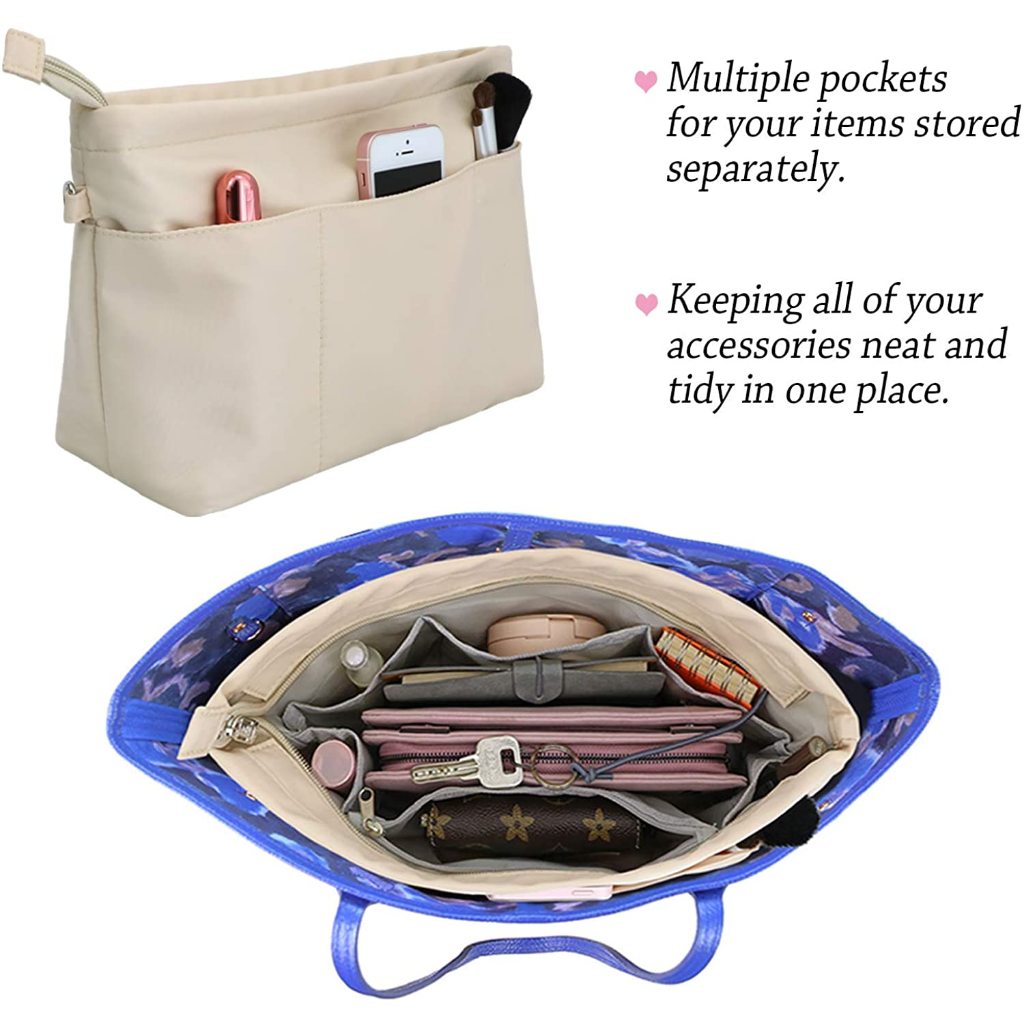 Purse Organizer Insert with Zipped Top for Tote Bag, Handbag Shaper with 13 Pockets