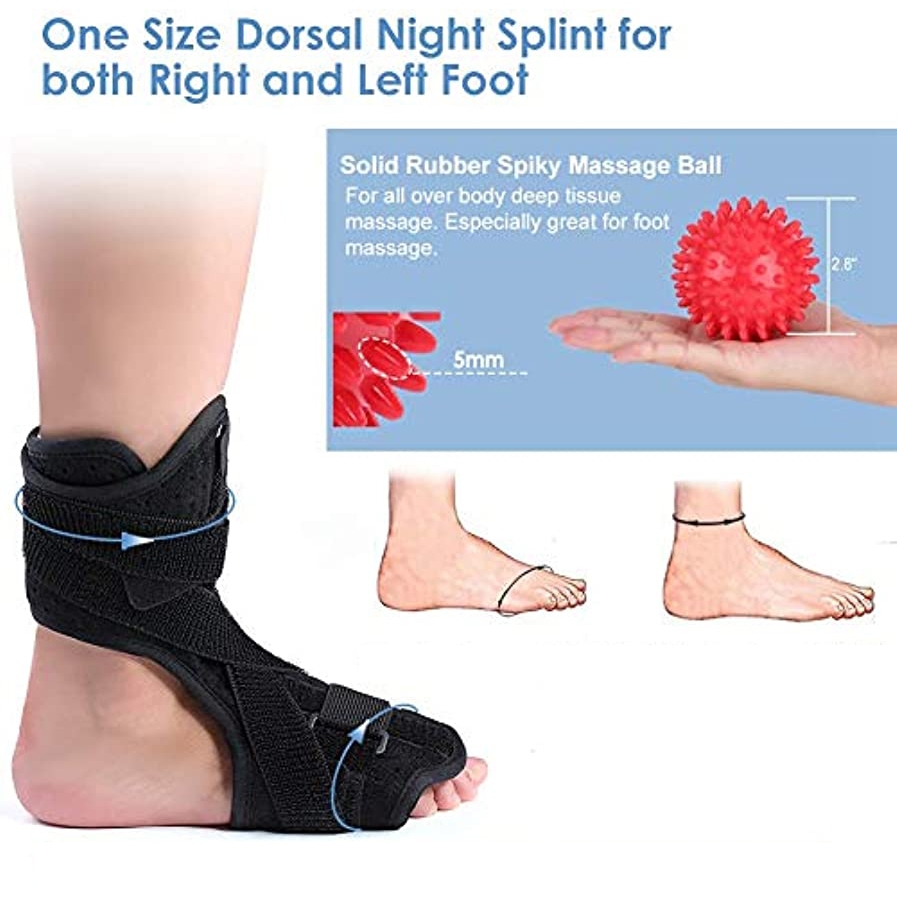 Plantar Fasciitis Night Splint, Foot Drop Orthotic Brace, Adjustable Elastic Night Splint with Massage Ball
