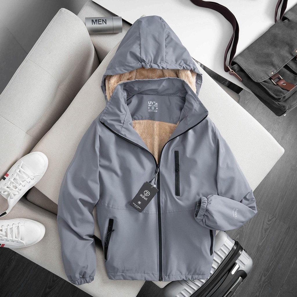 Men's and Women's Fleece-Lined Windbreaker, Men's and Women's Windbreaker Super Warm Fleece-Lined Windbreaker, Waterproof, Windproof, with detachable hood Jacket